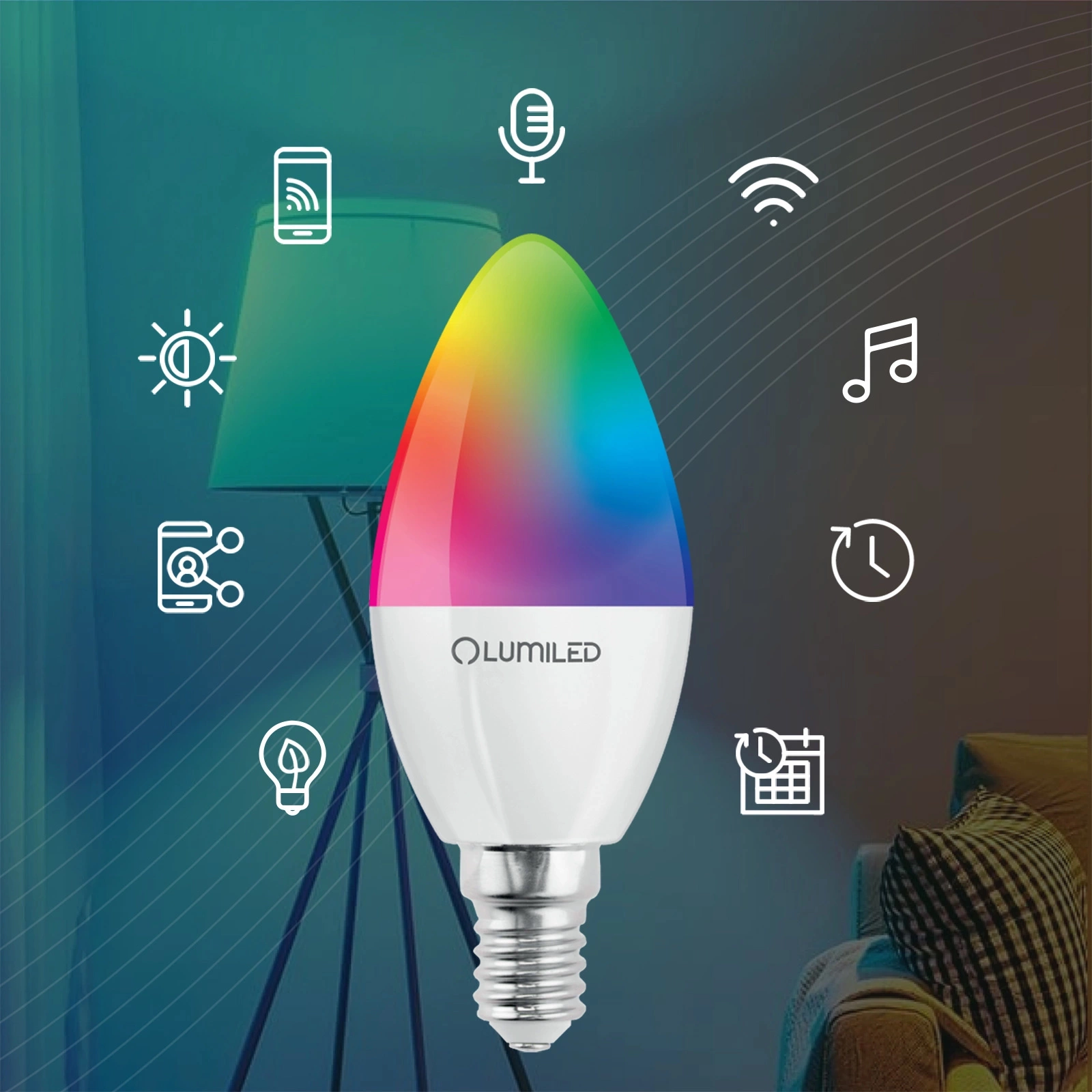LED žiarovka E14 SMART 5W od spoločnosti LUMILED je dokonalou kombináciou klasického dizajnu a moderných funkcií. Vďaka technológiám RGB a CCT vytvoríte svetlo vhodné pre každú situáciu - od relaxačného tepla až po chladný jas podporujúci koncentráciu. Aplikácia TUYA a hlasové ovládanie vám umožňujú plnú kontrolu nad svetlom vo vašej domácnosti, aj keď ste preč. Výkon 5 W poskytuje jas 450 lm, čo zodpovedá tradičnej 40W žiarovke, a zároveň šetrí energiu. Je to riešenie, ktoré spája pohodlie, modernosť a úspornosť v jednom výrobku.
