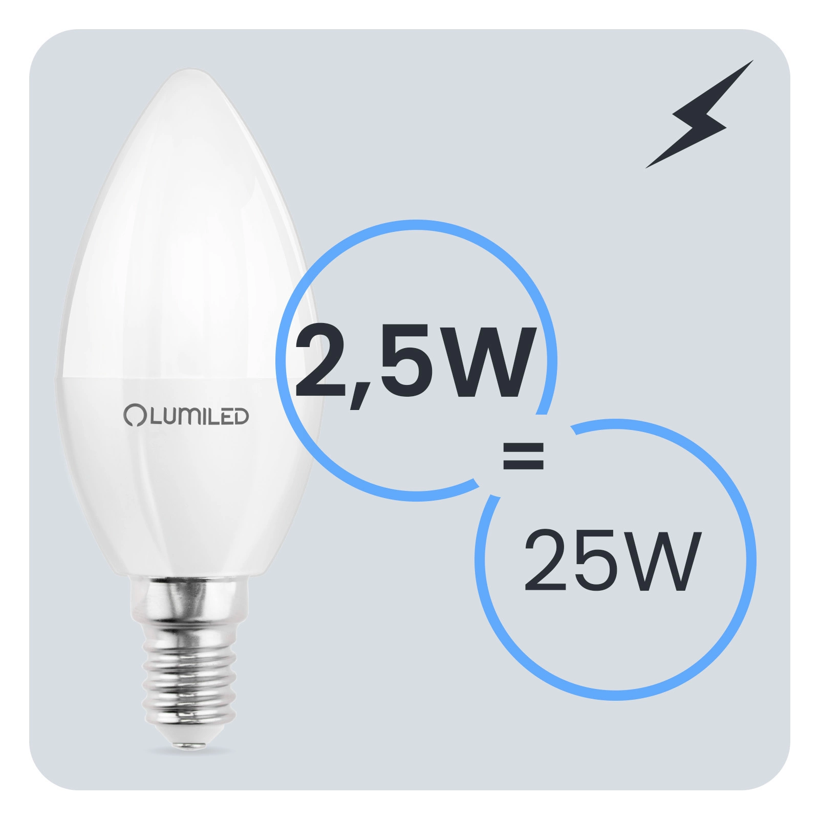 LED žiarovka od renomovanej značky LUMILED s päticou E14 a výkonom 2,5 W je vynikajúcou náhradou za tradičné 25W žiarovky a ponúka úsporu energie a dlhšiu životnosť. Vyžaruje svetlo so svetelným tokom 249 lúmenov a studenou farbou 6500 K, takže je ideálna na osvetlenie interiéru, kde sa vyžaduje výrazná biela farba svetla. Uhol vyžarovania 180° umožňuje široký rozptyl svetla, čím účinne osvetľuje miestnosť. Vďaka kvalitnej konštrukcii má životnosť až 15 000 hodín, čo znamená mnoho rokov používania. Okrem toho pracuje v širokom rozsahu napätia 165-265 V a je vhodný na použitie pri teplotách okolia od -20 °C do +40 °C. Ideálna voľba pre tých, ktorí si cenia úsporu energie a starostlivosť o životné prostredie.