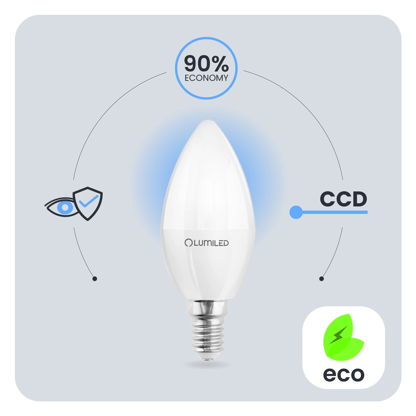 Vďaka CCD meniču použitému v LED žiarovke je žiarovka odolná voči poklesom a špičkám sieťového napätia. Svetlo nebliká ani sa netrasie. Vďaka CCD meniču je žiarovka dlhodobo bezchybná. Žiarovky LUMILED sú navrhnuté s ohľadom na používateľa. Zlá kvalita osvetlenia môže viesť k únave očí, preto majú naše žiarovky technický vývoj Eye Safe, ktorý zabezpečuje pohodlné a šetrné osvetlenie pre vaše oči v akejkoľvek miestnosti.