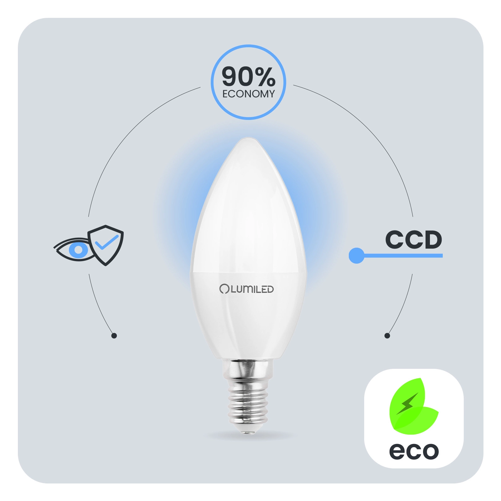 Vďaka CCD meniču použitému v LED žiarovke je žiarovka odolná voči poklesom a špičkám sieťového napätia. Svetlo nebliká ani sa netrasie. Vďaka CCD meniču je žiarovka dlhodobo bezchybná. Žiarovky LUMILED sú navrhnuté s ohľadom na používateľa. Zlá kvalita osvetlenia môže viesť k únave očí, preto majú naše žiarovky technický vývoj Eye Safe, ktorý zabezpečuje pohodlné a šetrné osvetlenie pre vaše oči v akejkoľvek miestnosti.
