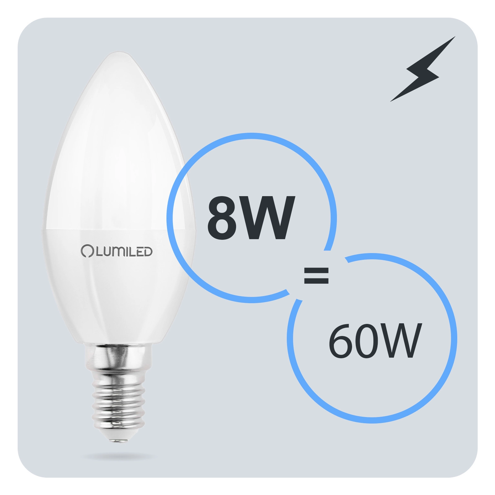 LED žiarovka od renomovanej značky LUMILED s päticou E14 a výkonom 8 W je vynikajúcou náhradou za tradičné 60W žiarovky a ponúka úsporu energie a dlhšiu životnosť. Vyžaruje svetlo so svetelným tokom 806 lúmenov a teplou farbou 3000 K, takže je ideálna na osvetlenie interiéru, kde sa vyžaduje mäkká, príjemná farba svetla. Uhol svietenia 180° umožňuje široký rozptyl svetla, čím účinne osvetľuje miestnosť. Vďaka kvalitnému spracovaniu má životnosť až 15 000 hodín, čo znamená mnoho rokov používania. Okrem toho pracuje v širokom rozsahu napätia 165-265 V a je vhodné na použitie pri teplotách okolia od -20 °C do +40 °C. Ideálna voľba pre tých, ktorí si cenia úsporu energie a starostlivosť o životné prostredie.