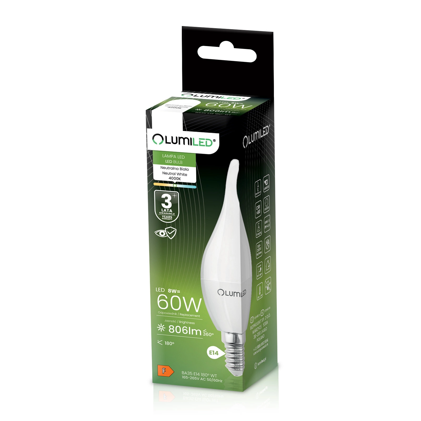 LED žiarovka od renomovanej značky LUMILED s päticou E14 a výkonom 8 W je vynikajúcou náhradou za tradičné 60W žiarovky a ponúka úsporu energie a dlhšiu životnosť. Vyžaruje svetlo so svetelným tokom 806 lúmenov a neutrálnou farbou 4000 K, takže je ideálna na osvetlenie interiéru, kde sa vyžaduje jasná a prirodzená farba svetla. Uhol osvetlenia 180° umožňuje široký rozptyl svetla, čím účinne osvetľuje miestnosť. Vďaka kvalitnému spracovaniu má životnosť až 15 000 hodín, čo znamená mnoho rokov používania. Okrem toho pracuje v širokom rozsahu napätia 165-265 V a je vhodné na použitie pri teplotách okolia od -20 °C do +40 °C. Ideálna voľba pre tých, ktorí si cenia úsporu energie a starostlivosť o životné prostredie.