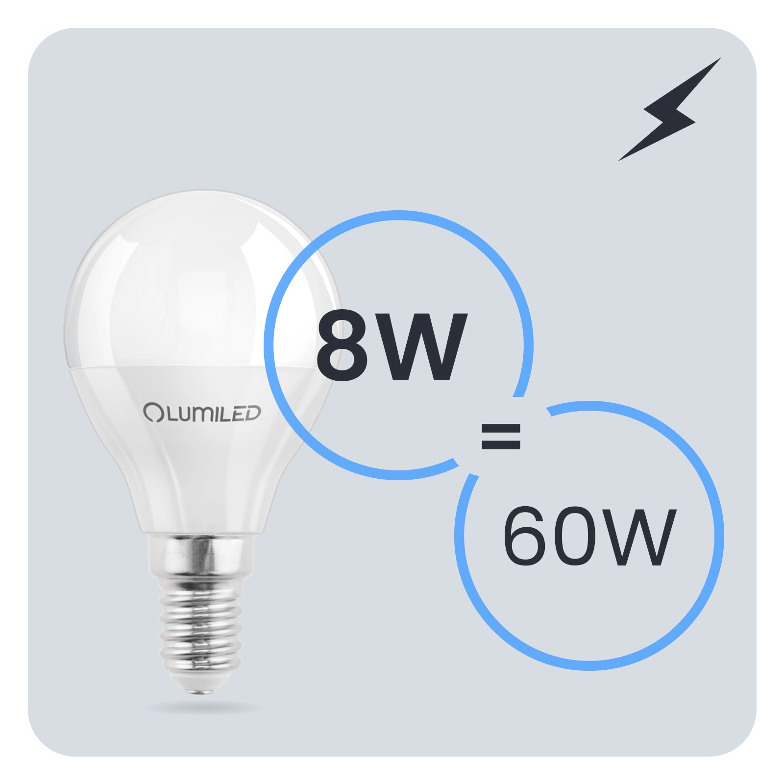 8W, 6500K LED žiarovka od spoločnosti Lumiled kombinuje vysoký výkon s energetickou účinnosťou. S vyžarovaným svetelným tokom880 lúmenov poskytuje svetlo porovnateľné s tradičnou 60-wattovou žiarovkou a zároveň výrazne znižuje spotrebu elektrickej energie. Vďaka malým rozmerom a závitu E14 je ideálna pre nástenné svietniky, lampy a svietidlá s obmedzeným priestorom. Je praktickou voľbou do miestností, kde potrebujete ostré, ale oku lahodiace osvetlenie.