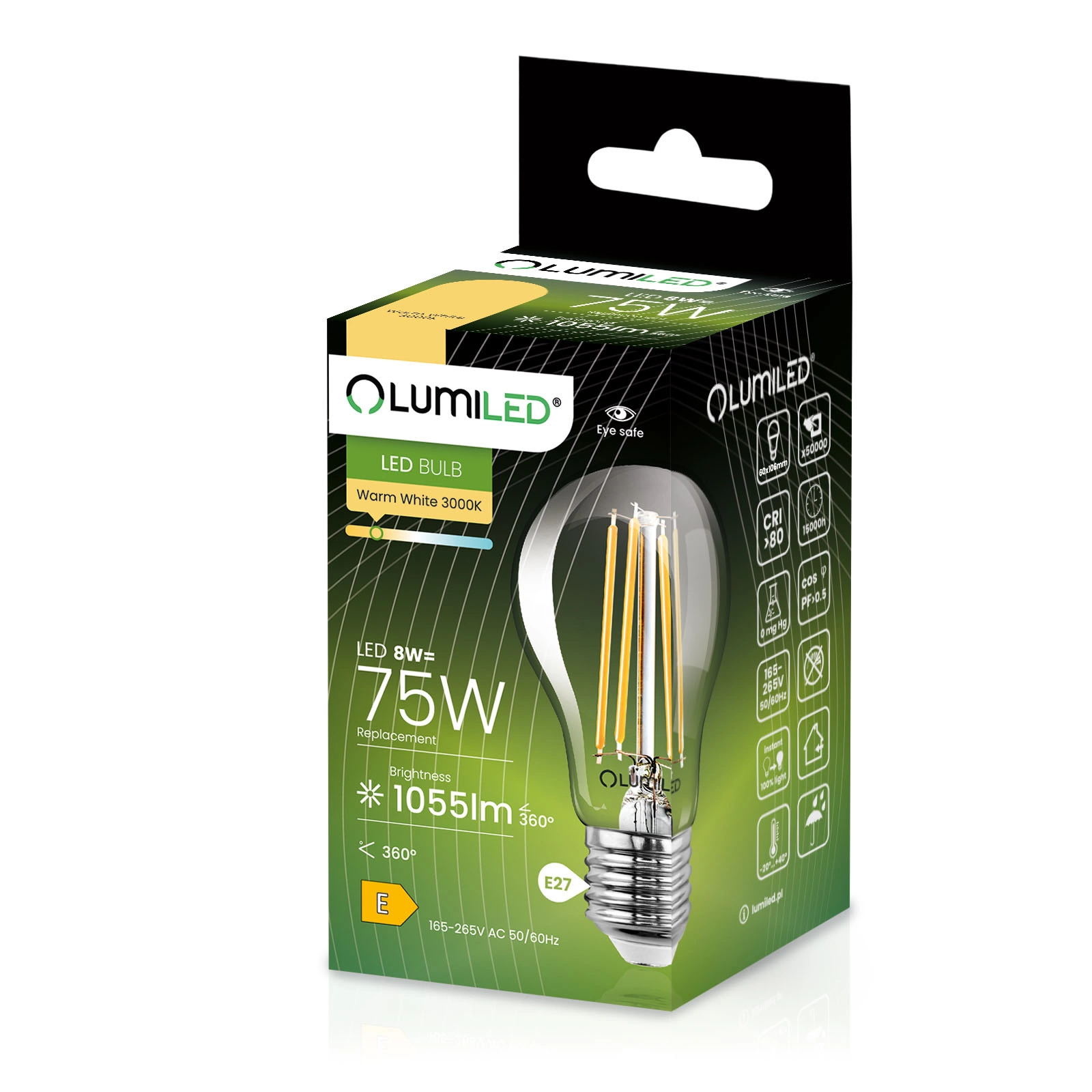 LED žiarovka od renomovanej značky LUMILED s päticou E27 a výkonom 8 W je vynikajúcou náhradou za tradičné 75W žiarovky a ponúka úsporu energie a dlhšiu životnosť. Vyžaruje svetlo so svetelným tokom 1055 lúmenov a teplou farbou 3000 K, takže je ideálna na osvetlenie interiéru, kde sa vyžaduje mäkká, príjemná farba svetla. Uhol vyžarovania 360° umožňuje široké rozptýlenie svetla a efektívne osvetlenie miestnosti. Vďaka kvalitnému spracovaniu má životnosť až 15 000 hodín, čo znamená mnoho rokov používania. Okrem toho funguje v širokom rozsahu napätia 165 - 265 V a je vhodné na použitie pri teplotách okolia od -20 °C do +40 °C. Ideálna voľba pre tých, ktorí si cenia úsporu energie a starostlivosť o životné prostredie.