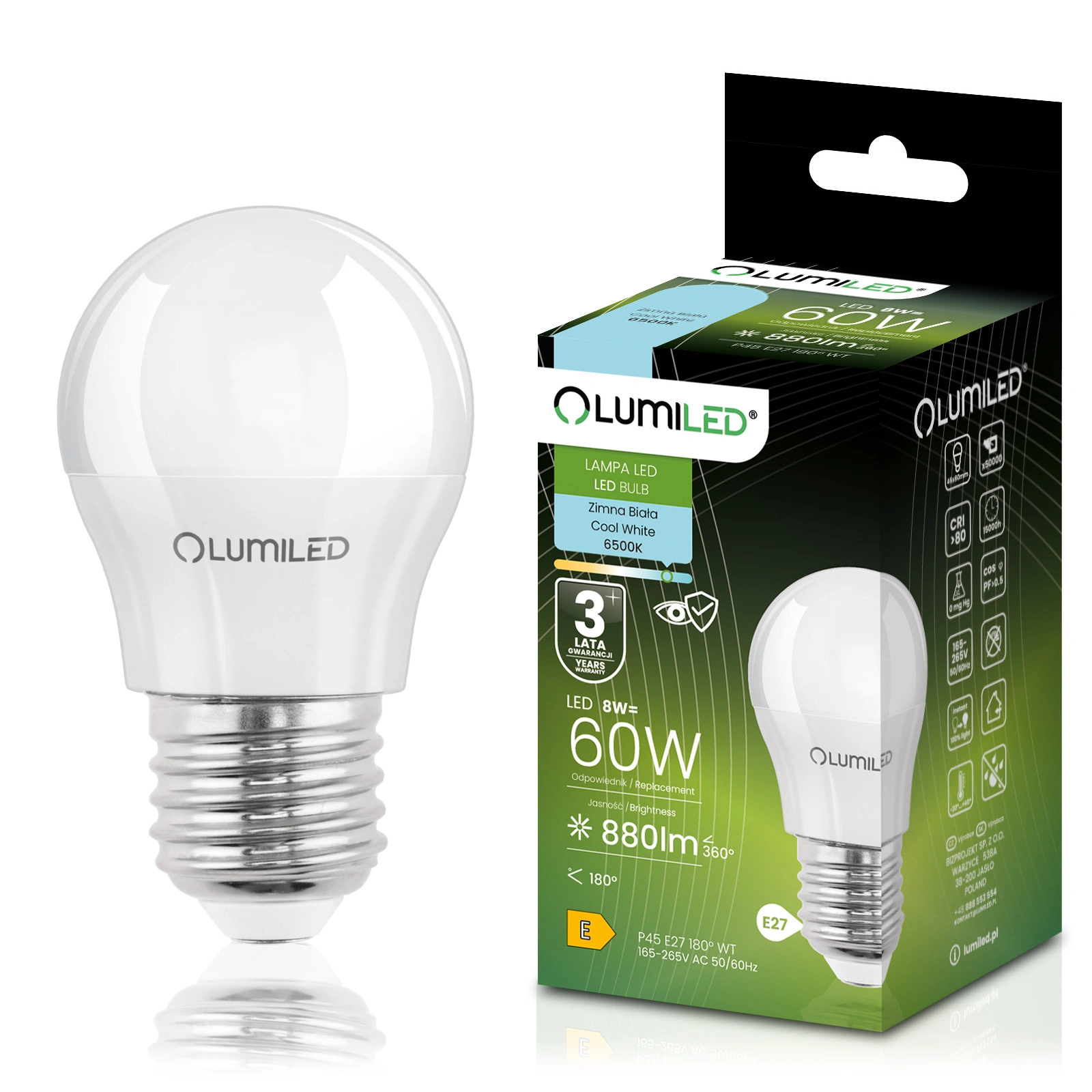 LED žiarovka od renomovanej značky LUMILED s päticou E27 a výkonom 8 W je vynikajúcou náhradou za tradičné 60W žiarovky a ponúka úsporu energie a dlhšiu životnosť. Vyžaruje svetlo so svetelným tokom 806 lúmenov a studenou farbou 6500 K, takže je ideálna na osvetlenie interiéru, kde sa vyžaduje výrazná biela farba svetla. Svetelný uhol 180° umožňuje široký rozptyl svetla, čím účinne osvetľuje miestnosť. Vďaka kvalitnej konštrukcii má životnosť až 15 000 hodín, čo znamená mnoho rokov používania. Okrem toho pracuje v širokom rozsahu napätia 165-265 V a je vhodný na použitie pri teplotách okolia od -20 °C do +40 °C. Ideálna voľba pre tých, ktorí si cenia úsporu energie a starostlivosť o životné prostredie.
