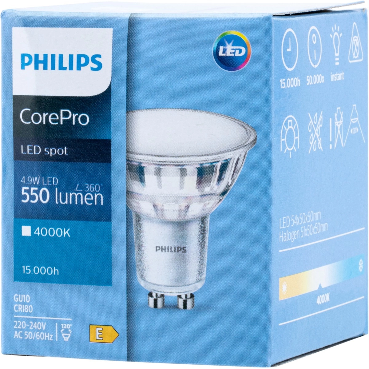 Żarówka LED renomowanej i uznanej w branży oświetleniowej firmy PHILIPS z trzonkiem GU10 i mocy 4.9W. Żarówka doskonale sprawdzi się w każdym gospodarstwie domowym, sklepie, hotelu czy restauracji jako oświetlenie akcentowe lub dekoracyjne i może być montowana we wszystkich tradycyjnych oprawach, które wyposażone są w trzonek GU10.