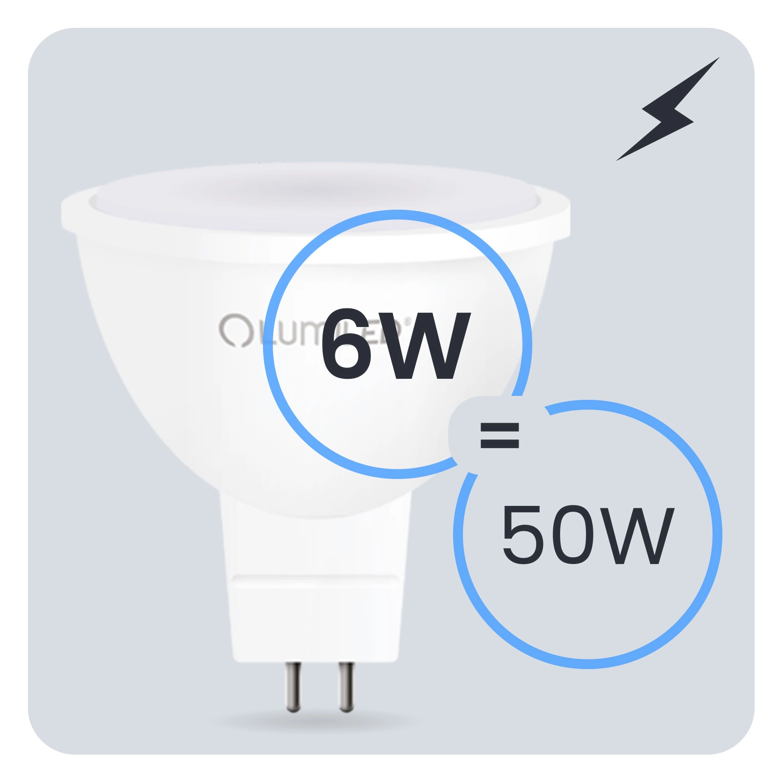 LED žiarovka od renomovanej značky LUMILED s päticou GU5,3 a výkonom 6 W je vynikajúcou náhradou za tradičné 50W žiarovky, ktorá ponúka úsporu energie a dlhšiu životnosť. Vyžaruje svetlo so svetelným tokom 580 lúmenov a studenou farbou 6500 K, takže je ideálna na osvetlenie interiéru, kde sa vyžaduje výrazná biela farba svetla. Uhol vyžarovania 120° umožňuje široký rozptyl svetla, čím účinne osvetľuje miestnosť. Vďaka kvalitnej konštrukcii má životnosť až 15 000 hodín, čo znamená mnoho rokov používania. Okrem toho pracuje v širokom rozsahu napätia 165-265 V a je vhodný na použitie pri teplotách okolia od -20 °C do +40 °C. Ideálna voľba pre tých, ktorí si cenia úsporu energie a starostlivosť o životné prostredie.