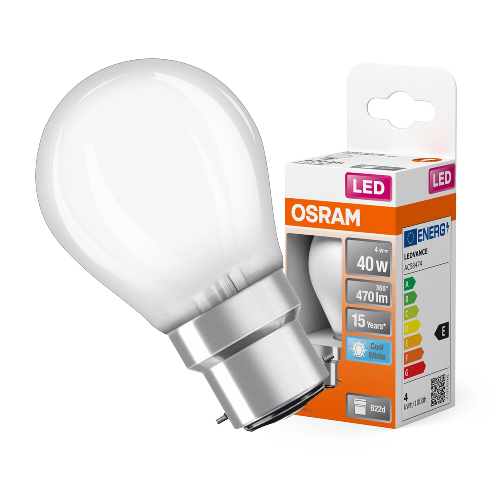 LED žiarovka P45 guľka B22d 4W = 40W 470lm 4000K neutrálna biela 300° Retrofit Filament CLASSIC Osram