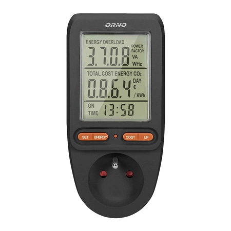 Merač spotreby elektrickej energie s LCD displejom Merač spotreby elektrickej energie pre zásuvku ORNO