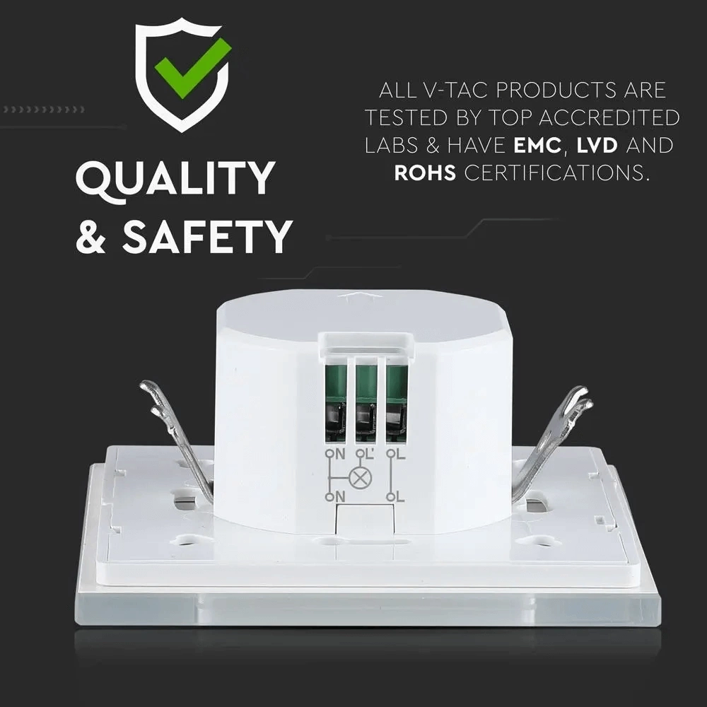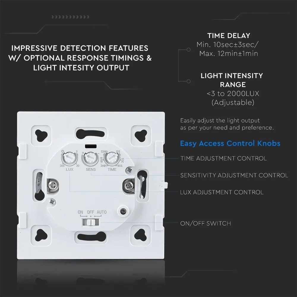 Czujnik Ruchu Mikrofalowy 180° IP20 BIAŁY Dopuszkowy Ścienny Nastawny V-TAC
