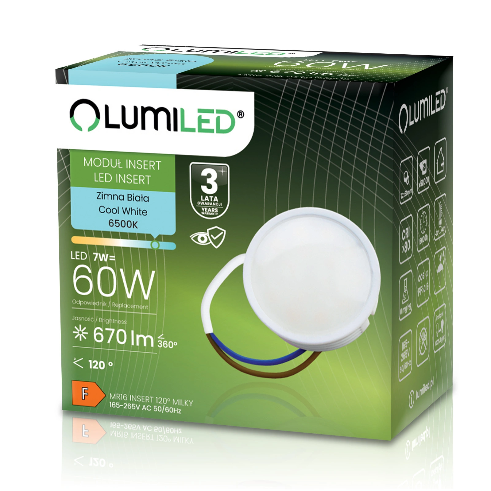 LED modul INSERT 7W od spoločnosti Lumiled je ideálnou voľbou pre tých, ktorí potrebujú jasné, rovnomerné osvetlenie s vysokou energetickou účinnosťou. Vyžaruje studenú farbu 6500 K a ponúka silné, ostré svetlo ideálne pre kanceláriu, garáž, chodbu alebo pracovné priestory. Svetelný tok 670 lm zodpovedá tradičnej 60W žiarovke a poskytuje intenzívne, rovnomerné svetlo bez blikania. Vďaka širokému 120° uhlu vyžarovania modul rovnomerne osvetľuje celú miestnosť, čím zlepšuje viditeľnosť a každodenný komfort. Je ideálnou voľbou tam, kde je dôležitá funkčnosť, vysoký jas a efektívne osvetlenie.