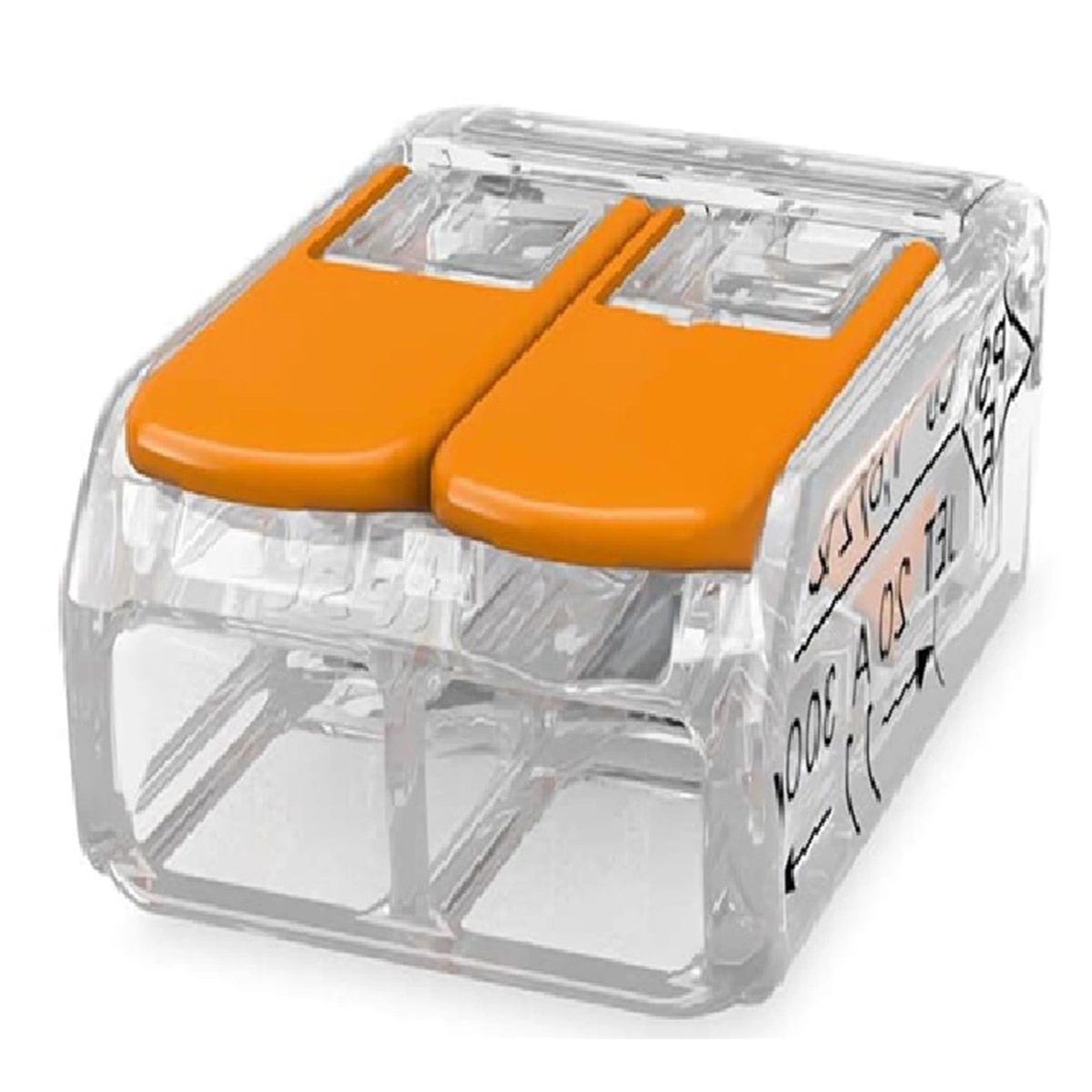 - Montaż wtykowy do podłączenia 2 przewodów typu linka, jednodrutowych i wielodrutowych