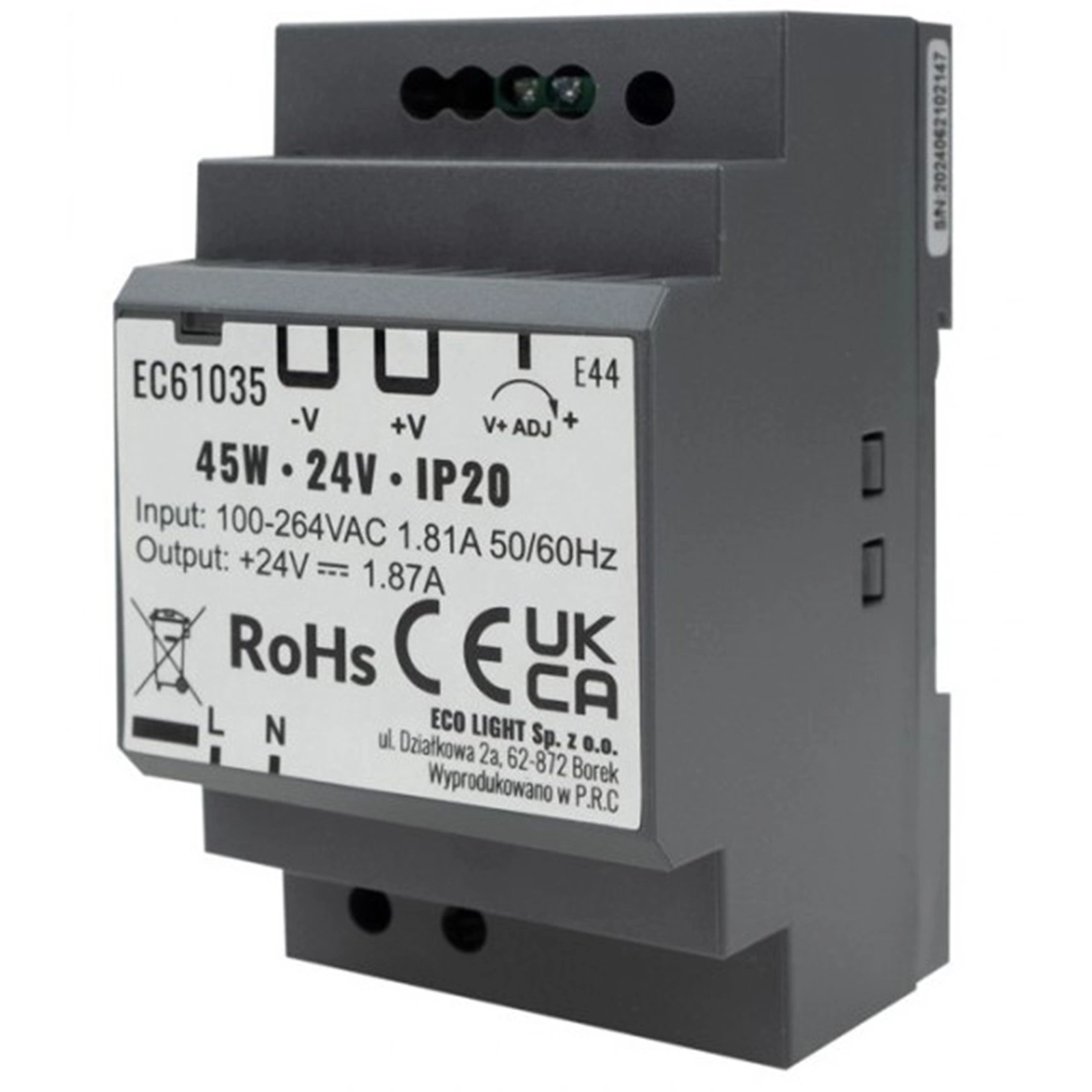 Objavte špičkový napájací zdroj na DIN lištu navrhnutý pre všestrannosť a spoľahlivosť. 45W napájací zdroj PREMIUM LINE poskytuje stabilné jednosmerné napätie 24 V so vstupným napätím 220-240 V AC. Tento napájací zdroj, ktorý je ideálny na použitie v priemyselných automatizačných systémoch aj v inštaláciách LED osvetlenia, poskytuje odolnosť a bezpečnosť na úrovni IP20 a chráni pred kontaktom s väčšími pevnými predmetmi.