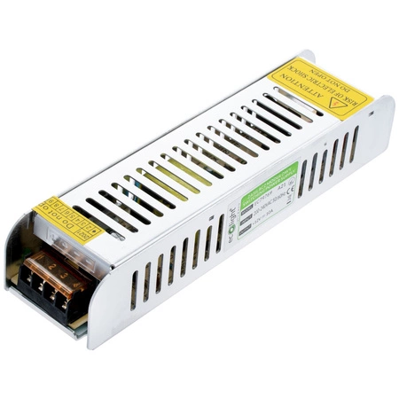 Zasilacz 120W 12V DC IP20 10A cechuje się niezawodną pracą która pozwala na podłączenie taśm LED przy bezpiecznym napięciu 12V. Zasilacz chłodzony jest swobodnym obiegiem powietrza. Produkt ten dzięki niskiej cenie stanowi najlepszy stosunek jakości do ceny.