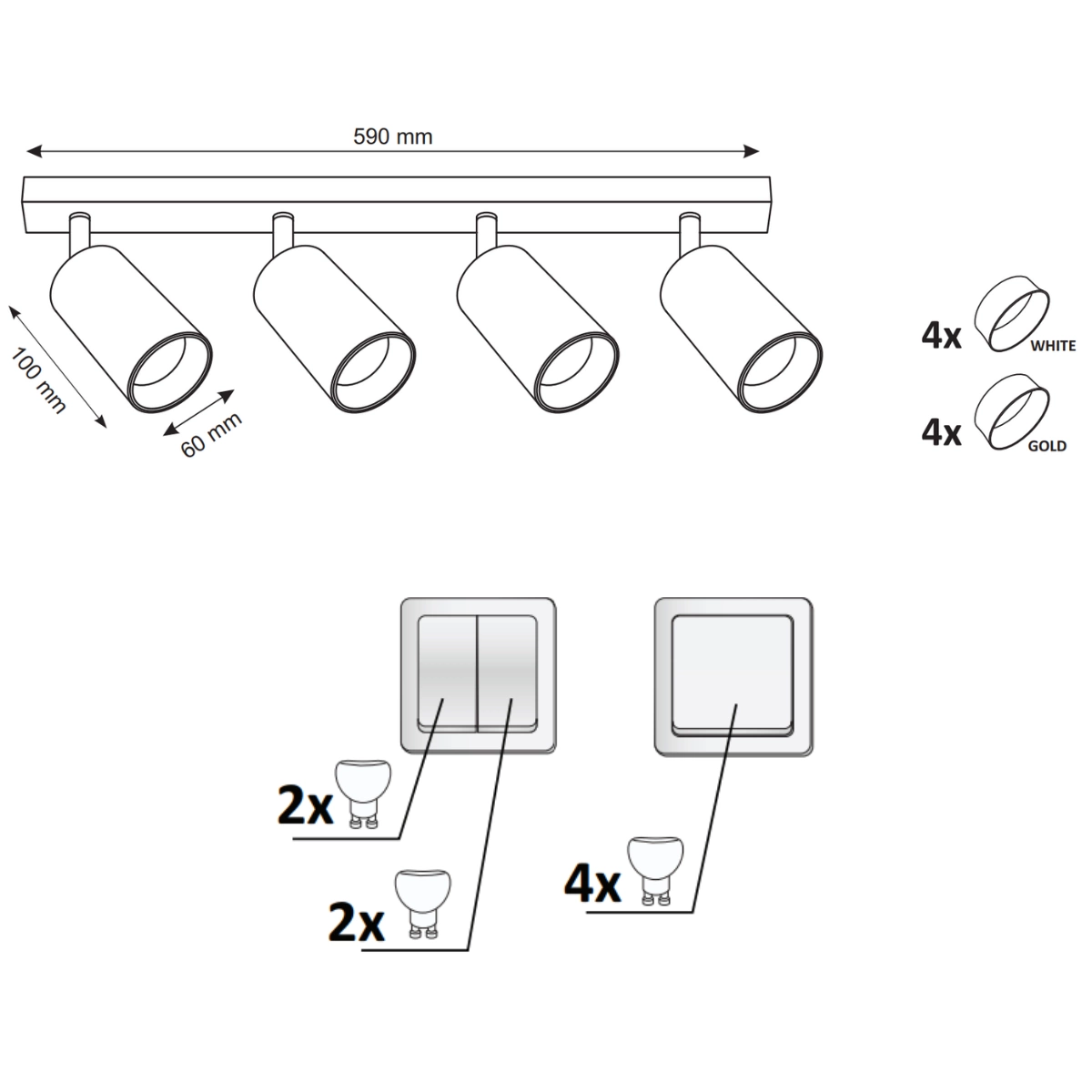 - Funkčnosť: Vybavené štyrmi svetelnými bodmi s vymeniteľnými svetelnými zdrojmi typu GU10, ktoré umožňujú prispôsobiť osvetlenie vašim individuálnym potrebám.