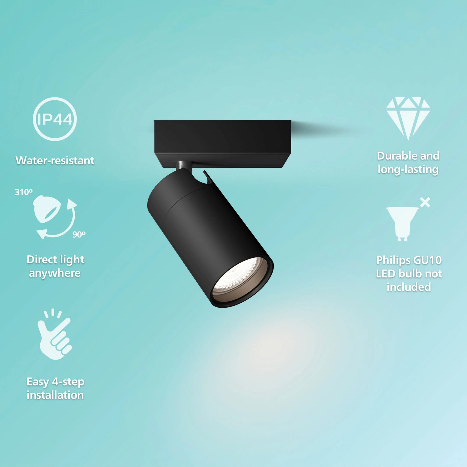 Predstavujeme vám elegantné nástenné svietidlo GU10 IP44 v modernom štýle od spoločnosti Philips Kosipo. Tento štýlový doplnok dokončený v elegantnej čiernej farbe dokonale spája funkčnosť s estetikou a je ideálnou voľbou na osvetlenie interiérov s moderným nádychom. Vďaka stupňu krytia IP44 je svietidlo odolné voči striekajúcej vode, takže je ideálne na použitie v kúpeľni alebo aj vonku nad vchodom do domu. Nástenné svietidlo Kosipo je napájané napätím 220-240 V a je určené na použitie so žiarovkami typu GU10, čo umožňuje jemné osvetlenie miestnosti. Vynikajúca kvalita vyhotovenia a použitie odolných materiálov zaručujú dlhú životnosť výrobku a minimálnu údržbu. Tento moderný nástenný svietnik sa ľahko inštaluje a dokonale sa hodí do rôznych interiérov. Zabezpečte si dokonalé osvetlenie s nástenným svietidlom Philips Kosipo a užite si funkčnosť v kombinácii s moderným dizajnom.