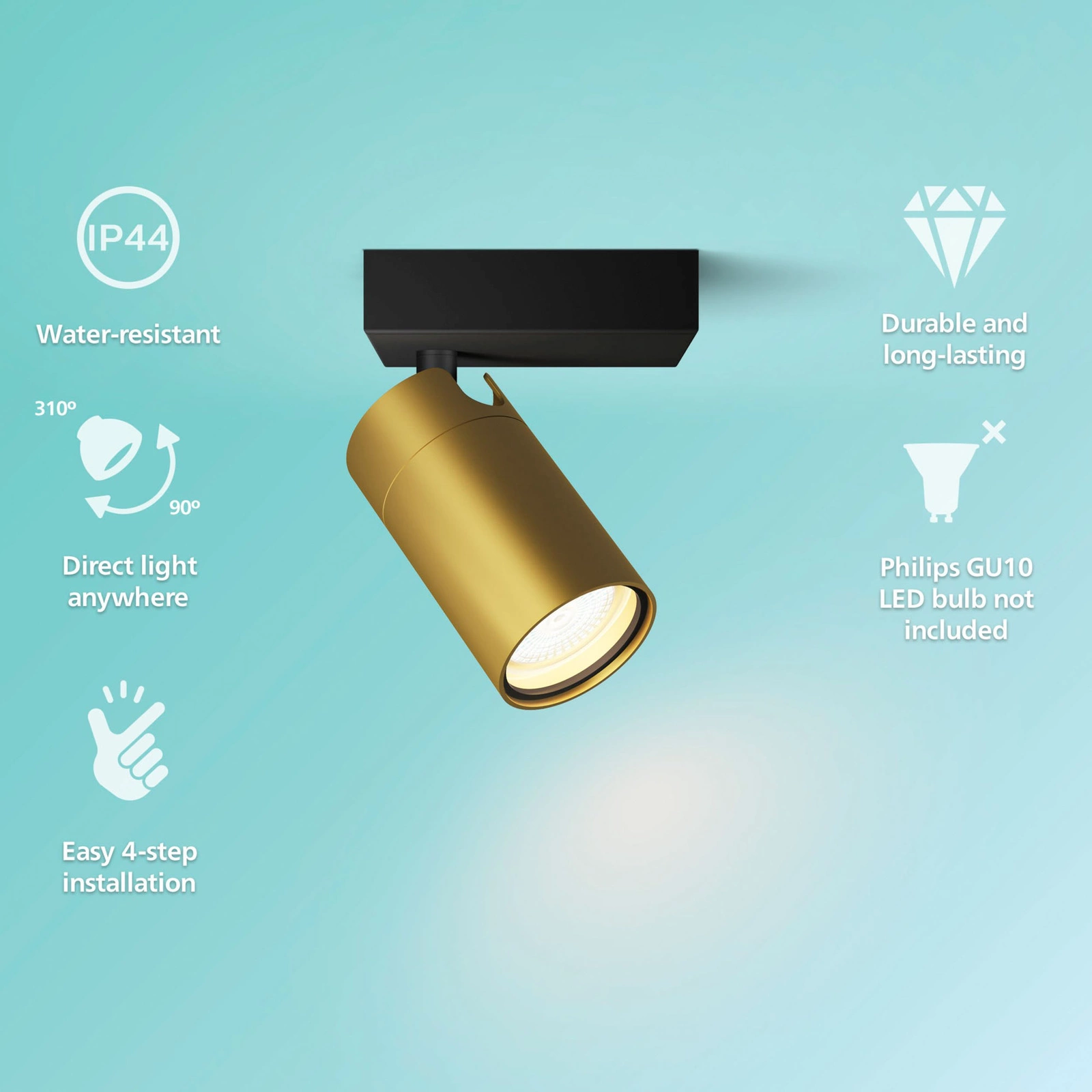 Predstavujeme vám moderné nástenné svietidlo Kosipo so štýlovým medeno-čiernym povrchom, ktoré sa stane elegantným doplnkom každého interiéru. Výrobok navrhla renomovaná spoločnosť Philips, čo zaručuje nielen atraktívny vzhľad, ale aj spoľahlivosť pri používaní. Vďaka stupňu krytia IP44 je nástenné svietidlo odolné voči vonkajším vplyvom a bude dokonale fungovať v interiéri aj exteriéri. Moderný dizajn sa dokonale hodí k rôznym usporiadaniam, ktorým dodáva charakter a sofistikovanosť. Model Kosipo je vhodný pre žiarovky typu GU10, čo používateľom ponúka možnosť používať rôzne zdroje svetla v závislosti od individuálnych potrieb osvetlenia. Svietidlo pracuje pri napätí 220-240 V, čo z neho robí energeticky úsporné riešenie, ktoré spája funkčnosť s estetikou. Výberom nástenného svietidla Philips investujete do výrobku, ktorý spája moderný dizajn s účinným osvetlením a dokonale zodpovedá potrebám súčasných interiérov.