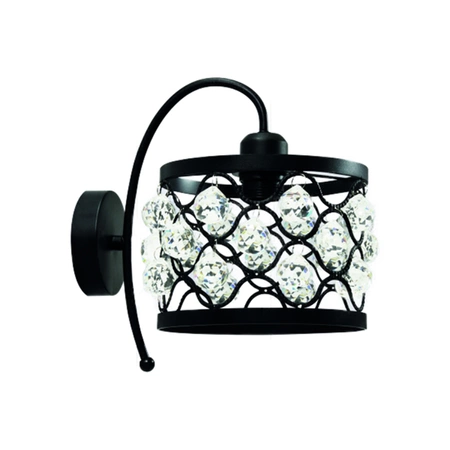 Lampa ścienna, kinkiet VEJLE ma niezwykle ozdobną, elegancką formę. Jej czarna, metalowa konstrukcja ozdobiona została kroplami szkła. Wspaniale prezentuje się we wnętrzach nowoczesnych, gdzie pojawiają się detale w kolorze czarnym. Może być ciekawym przełamaniem surowego wnętrza w stylu loftowym. Będzie pasować również do aranżacji inspirowanych stylem retro. Stworzona została z dużą dbałością o szczegóły z wysokiej jakości stali i pięknie oszlifowanego szkła, które w dzień pięknie się mieni. Wieczorem natomiast lampa pozwala uzyskać niezwykły efekt rozproszenia światła. Sprawdzi się nie tylko w salonie, ale także w jadalni, jako oświetlenie stołu.