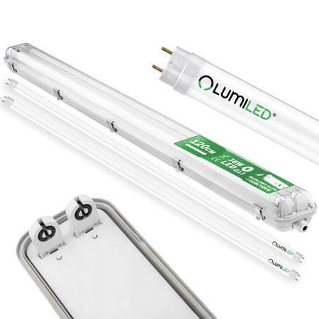 Oprawa Hermetyczna Pyłoszczelna 120cm 2xT8 G13 IP65 + Świetlówki LED 18W 6500K Lumiled