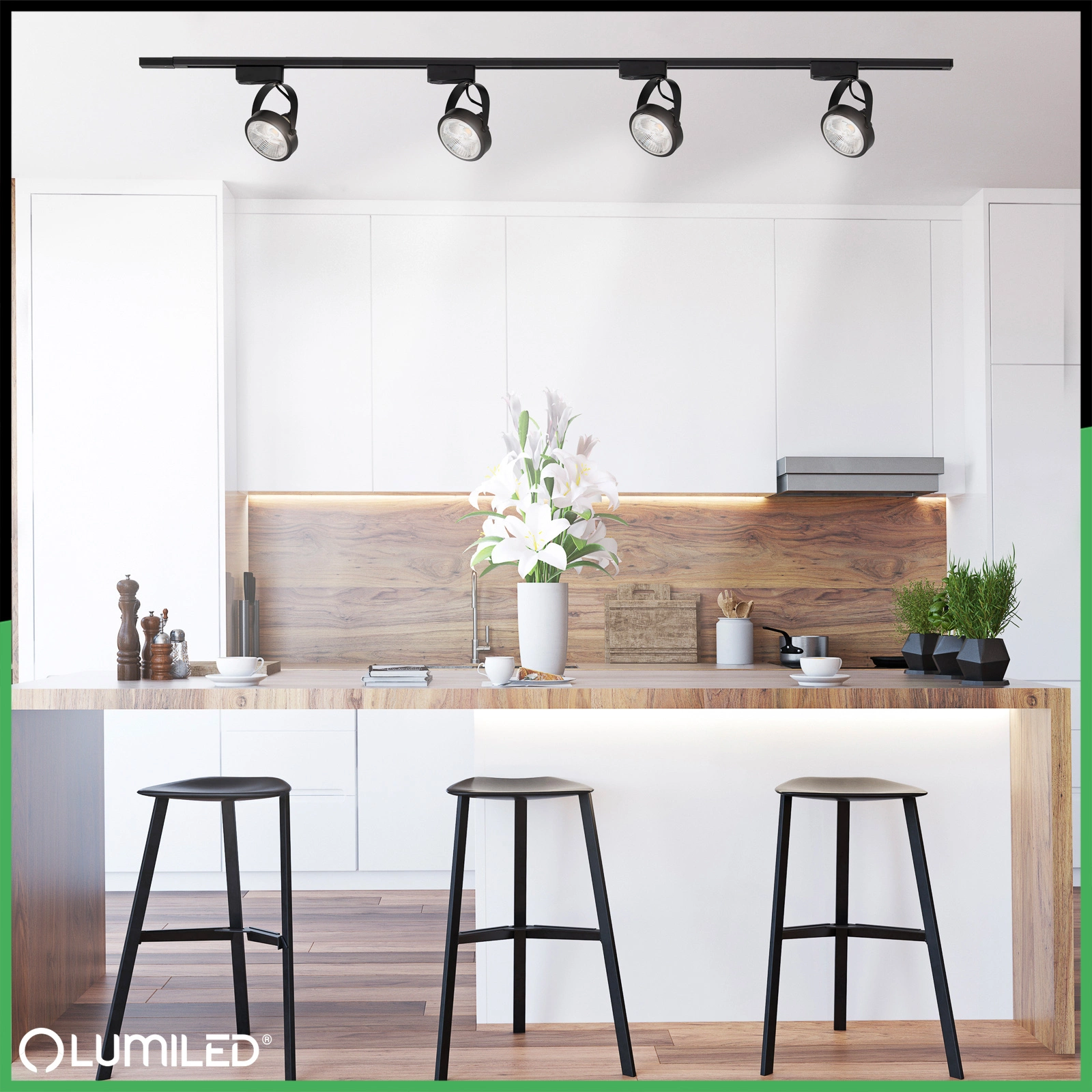 Zestaw: Listwa Oświetleniowa 2m + Cztery Reflektory Szynowe w kolorze czarnym wykonane z wysokiej jakości stopu aluminium znanej i renomowanej na rynku oświetleniowym marki Lumiled®, to połączenie minimalizmu i funkcjonalności, które sprawdzi się w każdym pomieszczeniu.