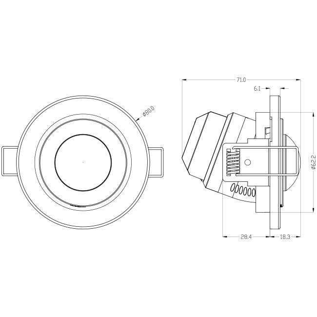 - Plné pokrytie detekcie - Senzor PIR poskytuje uhol detekcie 360°, čo je ideálne pre miestnosti rôznych tvarov, ako sú chodby, obývacie izby, spálne alebo schodiská.