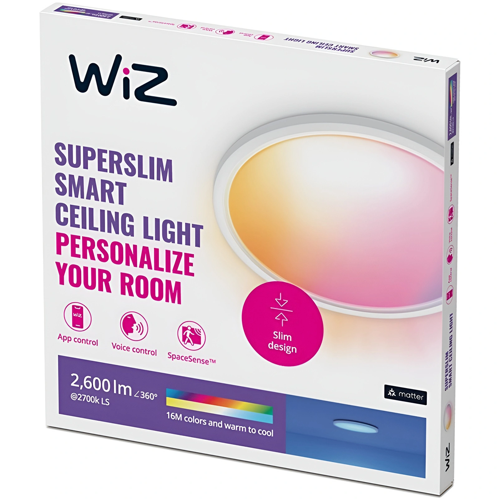 Objavte novú kvalitu osvetlenia s naším inteligentným stropným svietidlom WiZ Superslim RGB! Ak hľadáte moderné riešenie pre svoj interiér, toto svietidlo je pre vás ideálne. Je vybavené integrovaným 22W LED zdrojom, ktorý vytvára pôsobivý jas 2600 lúmenov a svetelnú účinnosť 118,2 lm/W, vďaka čomu získate mimoriadne efektívny zdroj svetla. Možnosť meniť farbu svetla v rozmedzí 2700-6500 K a dostupnosť celej palety RGB vám umožní prispôsobiť atmosféru miestnosti vašej nálade a príležitosti a vytvoriť nekonečné farebné kombinácie.