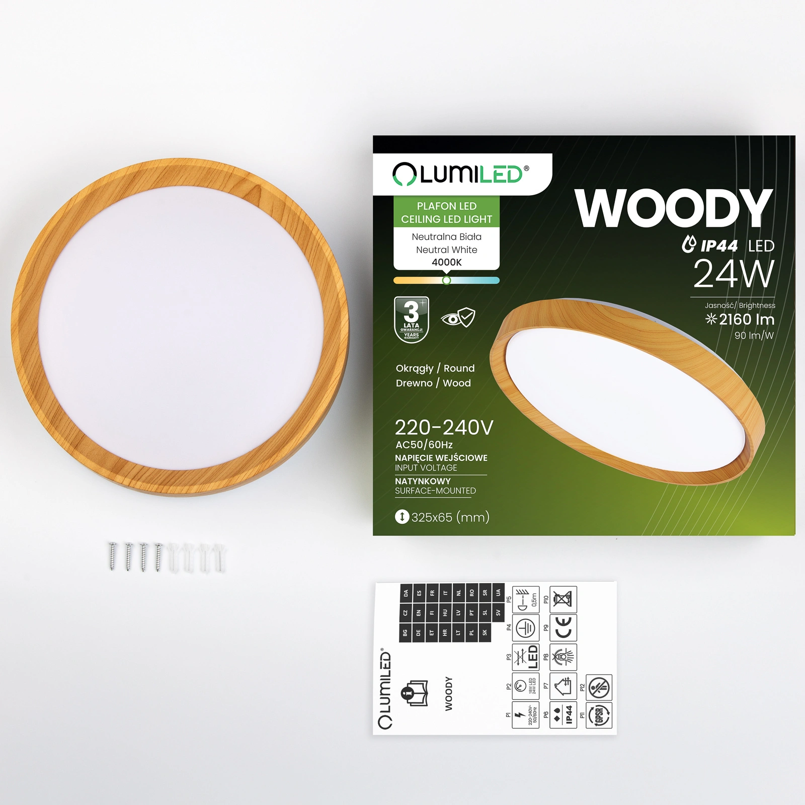 - Stropné svietidlo série WOODY s výkonom 24 W a svetelným tokom 2160 lm - 1 ks.