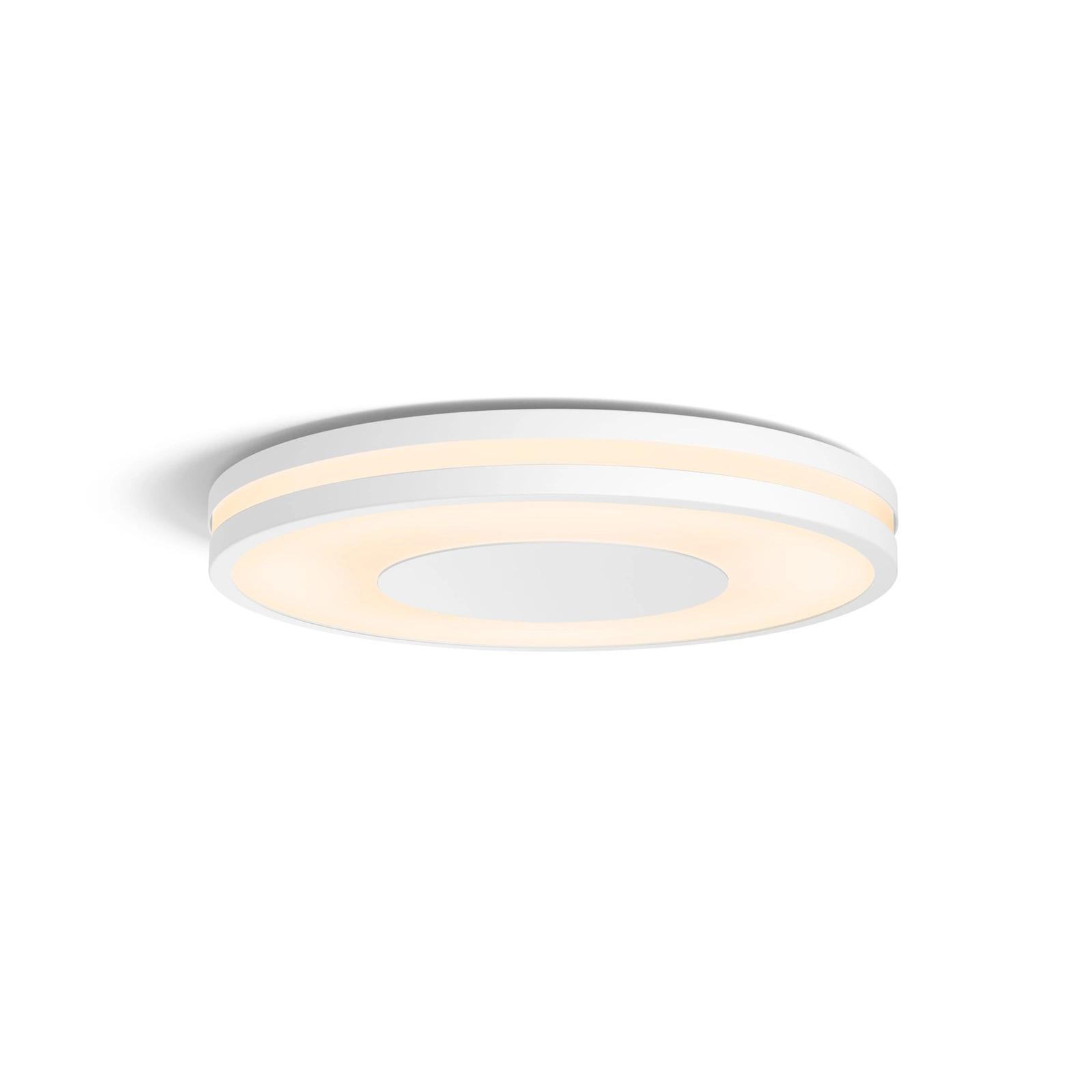 Lampa sufitowa Plafon HUE BEING LED renomowanej i cenionej w branży oświetleniowej firmy Philips. Lampa wyposażona w zintegrowane źródło światła LED o mocy 22,5W i bardzo wydajny strumień świetlny - 2500lm, emituje przyjemne i relaksujące światło z możliwością regulacji temperatury barwy w zakresie od przyjemnej ciepłej poprzez neutralną, aż do zimnej, za pomocą których możemy stworzyć nastrój odpowiedni na każdą okazję. Lampa Sufitowa BEING nie tylko idealnie wtapia się w wystrój domu dzięki smukłej, stylowej obudowie, ale także daje możliwość emitowania światła w trzech kierunkach, gwarantując oświetlenie funkcjonalne. Lampa ta może działać samodzielnie lub jako element inteligentnego systemu oświetlenia dzięki połączeniu z mostkiem Hue. Łatwo włączaj i wyłączaj światła, przyciemniaj, rozjaśniaj oraz wybieraj spośród czterech różnych scen świetlnych.