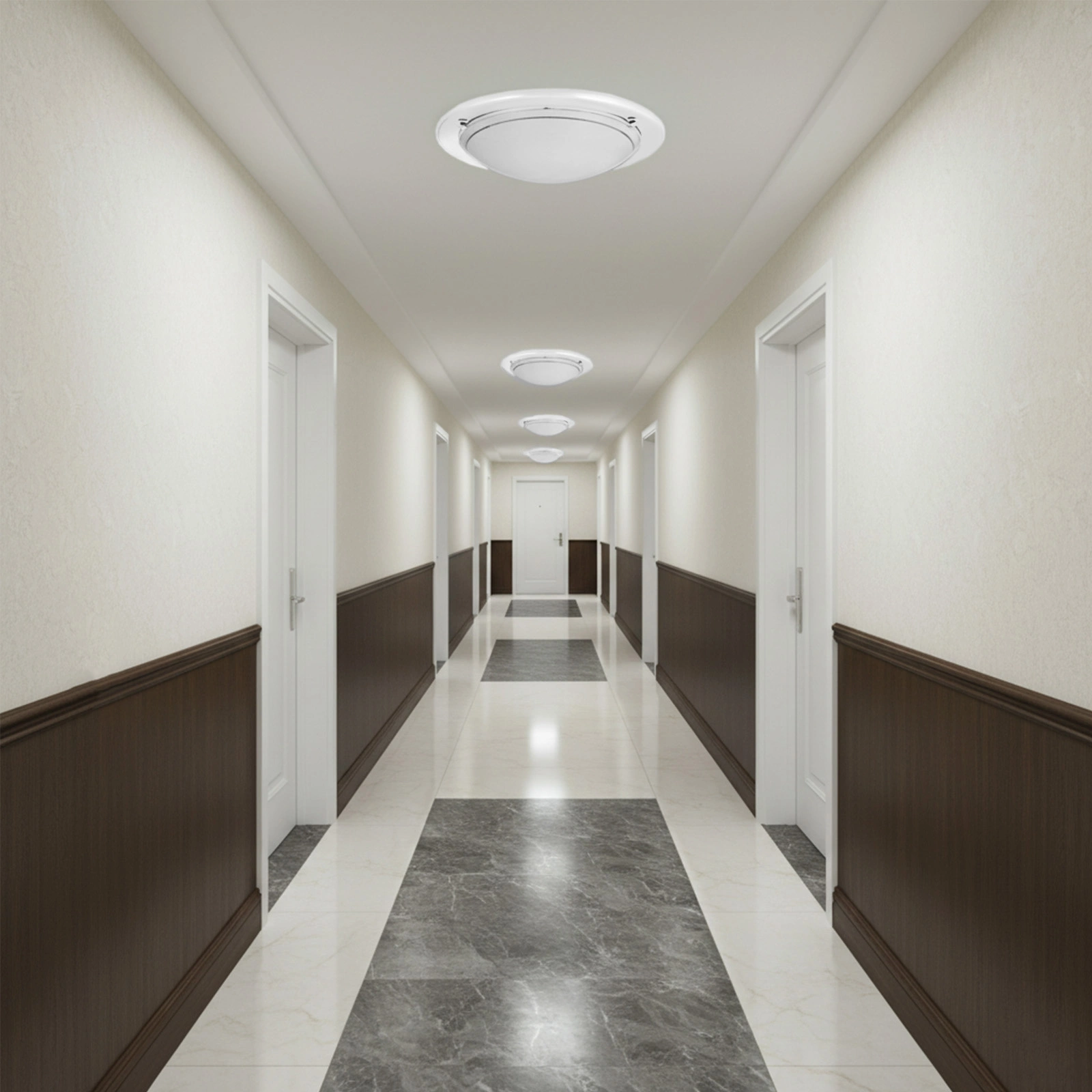 - Plafón - kompaktný, poskytuje rovnomerné osvetlenie