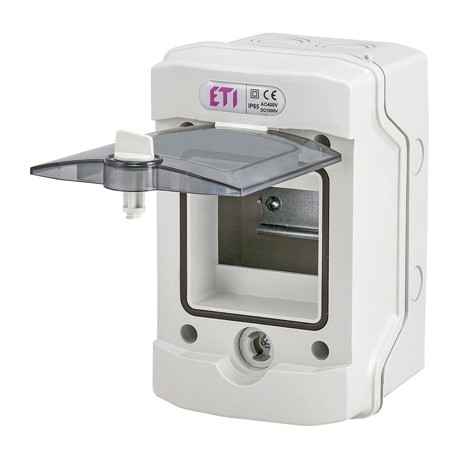 Rozdzielnica natynkowa wykonana z wysokiej jakości tworzywa sztucznego w kolorze szarym. Urządzenie posiada jeden rząd i 4 moduły. Drzwi są przeźroczyste, a pokrywa zamknięta.