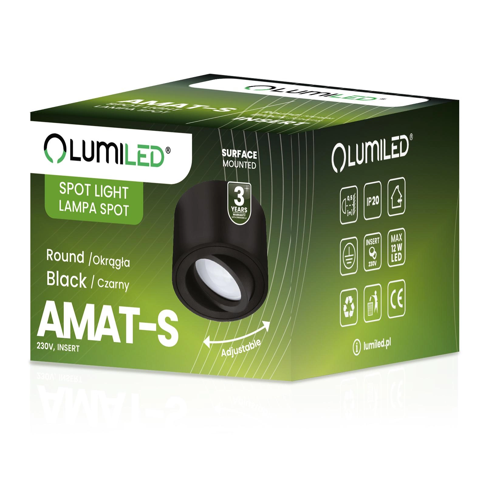 Zestaw renomowanej marki Lumiled składający się z Okrągłej Oprawy Sufitowej AMAT-S w kolorze Czarnym oraz przystosowanego do niej Wkładu LED. Oprawa wraz z energooszczędnym Wkładem LED o mocy 5W i Zimnej Barwie Światła o temperaturze barwowej 6000K stanowią połączenie nowoczesnego oraz trwałego źródła światła. Oprawa została wykonana z wysokiej jakości stopu aluminium oraz została przystosowana do montażu natynkowego. Oprawy serii AMAT dzięki pięknemu wzornictwu oraz minimalistycznym stylu sprawiają, że wpasują się niemalże do każdej wewnętrznej aranżacji. Swoje zastosowanie znajdują głównie wewnątrz budynku, idealnie nadają się jako dekoracyjne lub ogólne oświetlenie korytarzy, przedpokoi, salonów, czy też eleganckich pomieszczeń biurowych.
