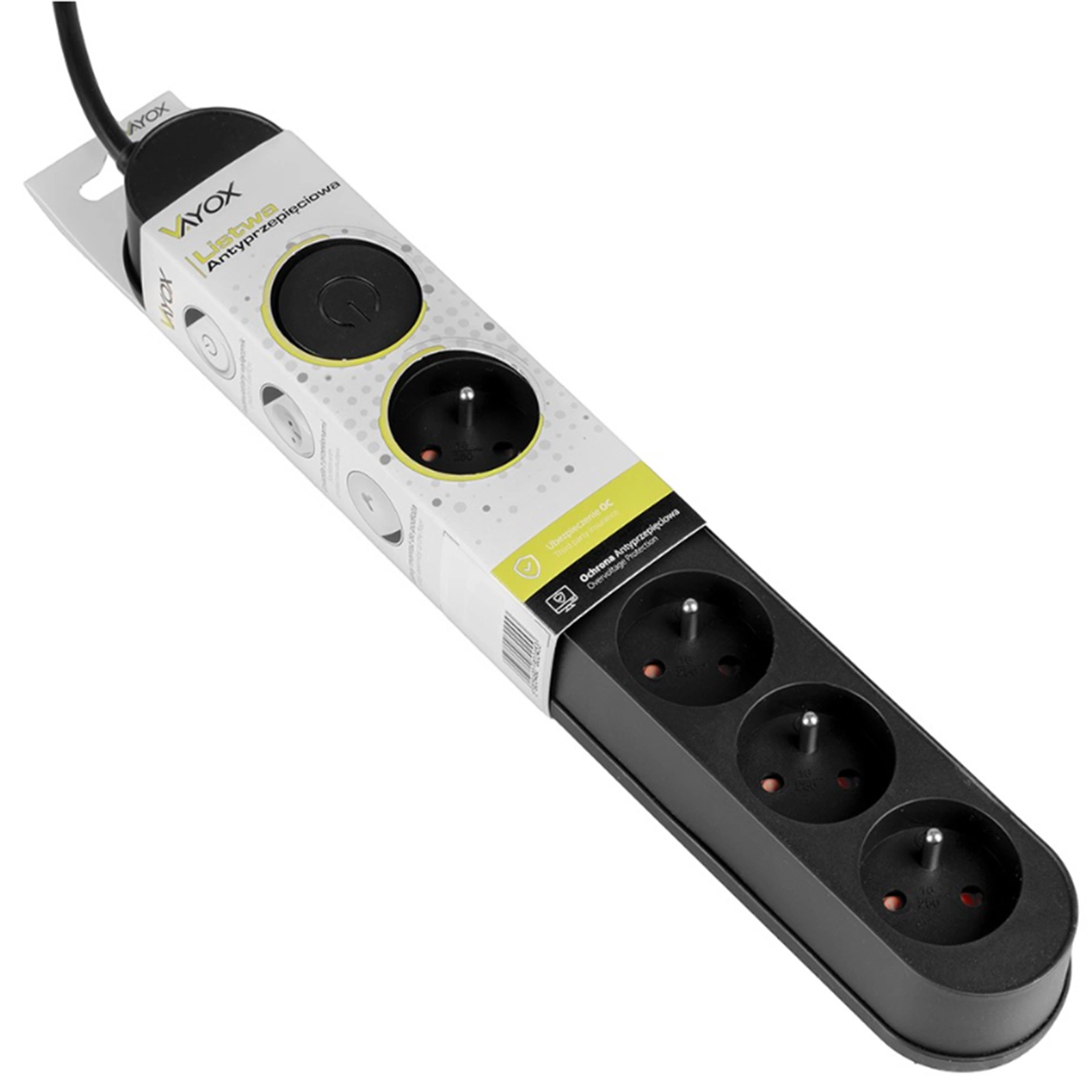 Przedłużacz marki Vayox to praktyczne i bezpieczne rozwiązanie do zasilania wielu urządzeń jednocześnie. Wyposażony w pięć gniazd oraz podświetlany wyłącznik ON/OFF, zapewnia wygodę użytkowania oraz dodatkową kontrolę nad zasilaniem podłączonych urządzeń. Jego elegancki czarny design oraz solidna konstrukcja sprawiają, że doskonale wpasowuje się w każde wnętrze.