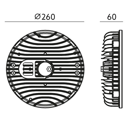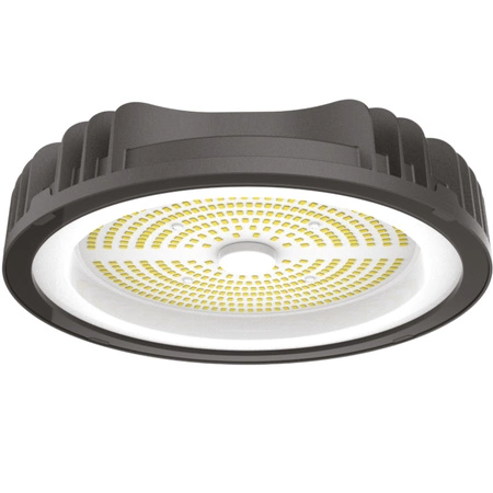 Lampa LED RIO HIGH BAY w kolorze czarnym i średnicy 26cm renomowanego polskiego producenta nowoczesnych opraw oświetleniowych firmy KOBI. Lampa wyposażona została w wysokowydajne diody LED SAMSUNG oraz układ zasilający firmy Tospo. Oprawa o mocy 150W emituje neutralne przyjazne dla oka światło, generując strumień świetlny na poziomie 16500lm