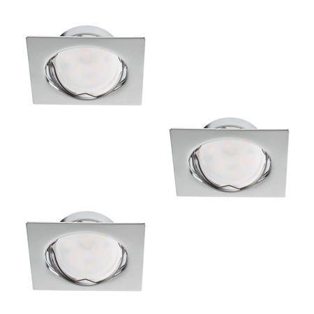 Sada 3x LED bodových svietidiel pre zapustenú montáž Nastaviteľné GU10 10W 3000K, teplá biela štvorcový chróm Tribis Kanlux