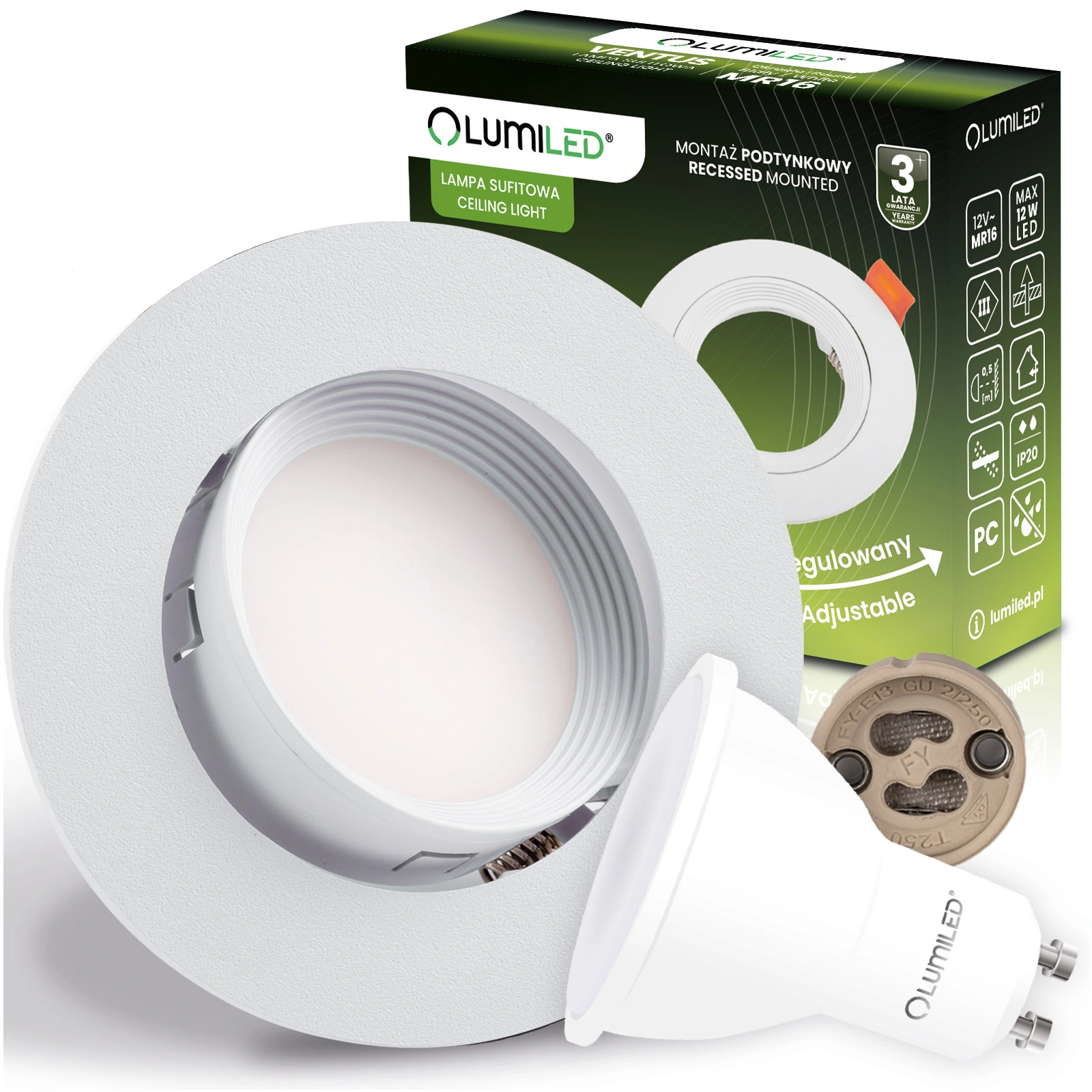 Zestaw Oprawa Halogenowa Podtynkowa VENTUS Biała Okrągła + Żarówka LED GU10 6W Ciepła 120° Lumiled + gniazdo
