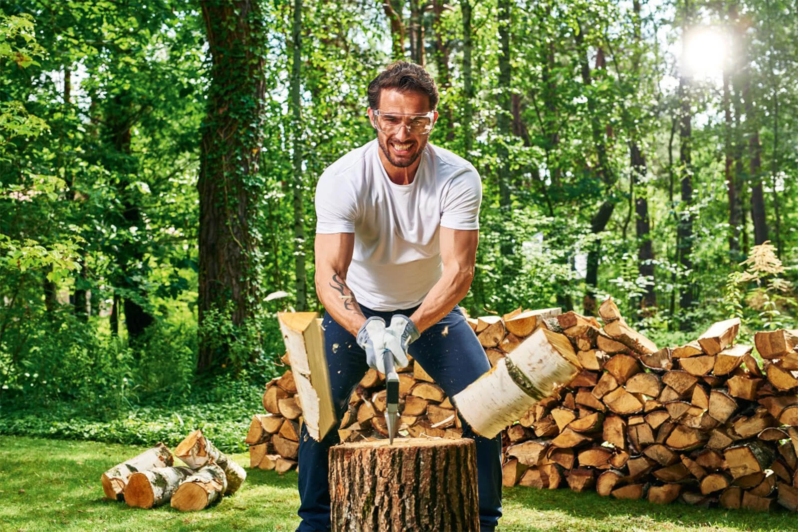 - Specjalny kształt głowicy w kształcie klina, przystosowany do rozłupywania drewna