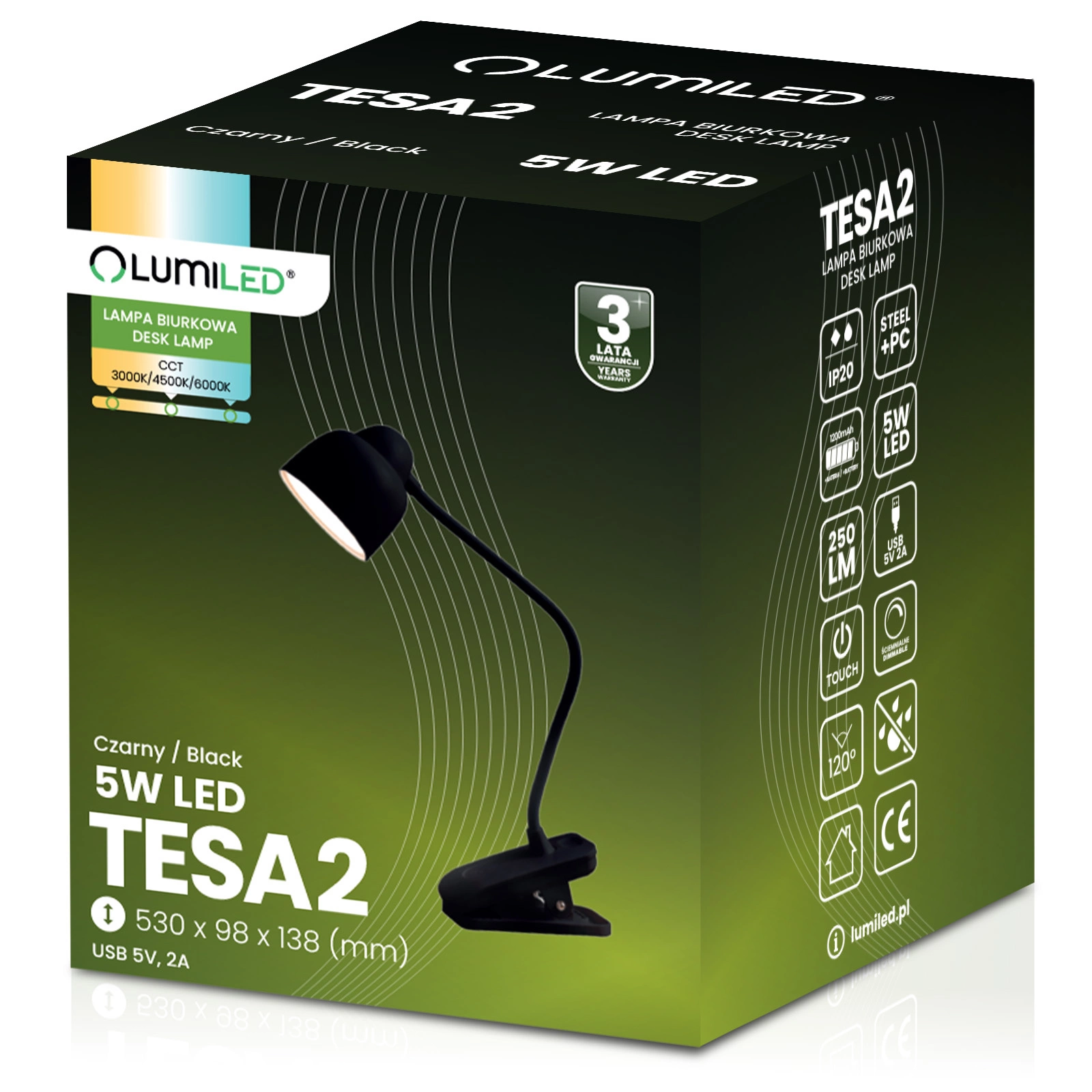 Stolná lampa TESA2 od spoločnosti Lumiled spája moderný dizajn a funkčnosť, ktoré uľahčujú každodennú prácu a štúdium. Vďaka nastaviteľnej farbe svetla v troch režimoch sa lampa prispôsobí každej situácii - od teplého svetla na podporu relaxácie až po studené svetlo na podporu koncentrácie. Vstavaná nabíjateľná batéria a port USB zvyšujú mobilitu a pohodlie, takže zariadenie môžete používať aj tam, kde je obmedzený prístup k zásuvke. Vďaka robustným materiálom a intuitívnemu dotykovému ovládaniu je praktický a štýlový zároveň.