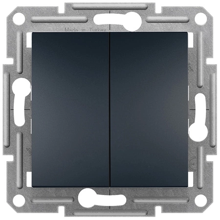 Włącznik Światła Podwójny Asfora w kolorze antracytu, do montażu podtynkowego. Prezentowany Włącznik służy do włączania i wyłączania obwodu, z którym połączone jest urządzenie elektryczne. Mechanizm posiada czytelny schemat oraz oznaczenie zacisków ułatwiające podłączenie. Łącznik wykonany został z wysokogatunkowego tworzywa sztucznego. Bardzo dobrze dopasowane przyciski i elementy obudowy zapewniają bezpieczne użytkowanie przez długie lata. Etykieta Green Premium jest zobowiązaniem firmy Schneider Electric do dostarczania produktów o najwyższej w swojej klasie ekologiczności.