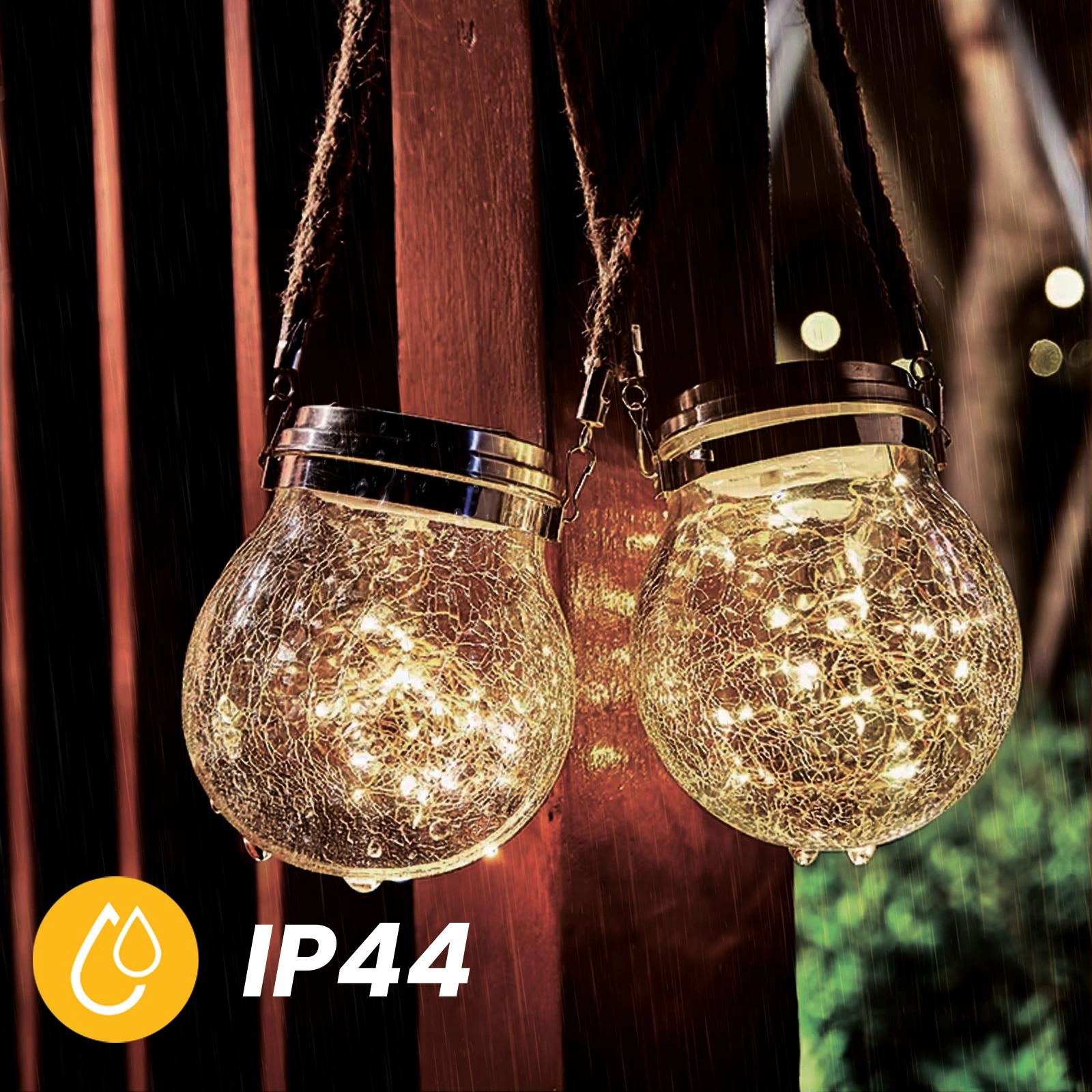 Solárna lampa bola navrhnutá s ohľadom na pohodlie a všestrannosť. Vďaka praktickej rukoväti ju môžete jednoducho zavesiť kamkoľvek alebo umiestniť na stôl, terasu či parapet a vytvoriť tak jedinečnú atmosféru. Vysoký stupeň krytia IP44 zaručuje odolnosť voči meniacim sa poveternostným podmienkam, vďaka čomu je lampa ideálna na použitie v záhrade aj na balkóne.
