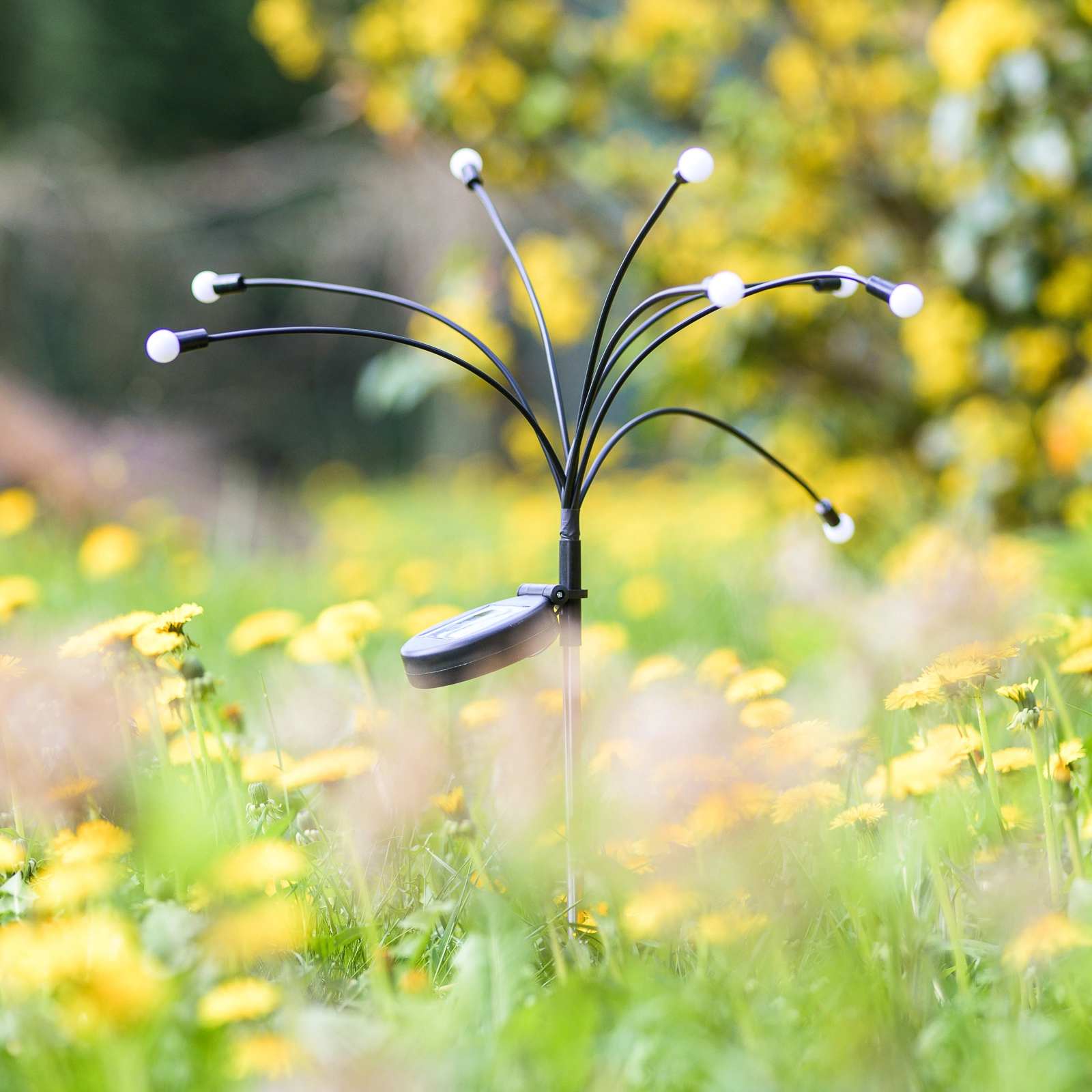 Solárna lampa TULIO od renomovanej značky osvetlenia LUMILED je predovšetkým fenomenálnou dekoráciou, ktorá po zotmení premení priestor na rozprávkové prostredie. Osem jemných LED gulí umiestnených na pružných rozvetvených ramenách vytvára fascinujúci vizuálny efekt. Jeho dynamické, viacfarebné osvetlenie RGB nedominuje, ale jemne podčiarkuje krásu okolia a vytvára jedinečnú atmosféru.