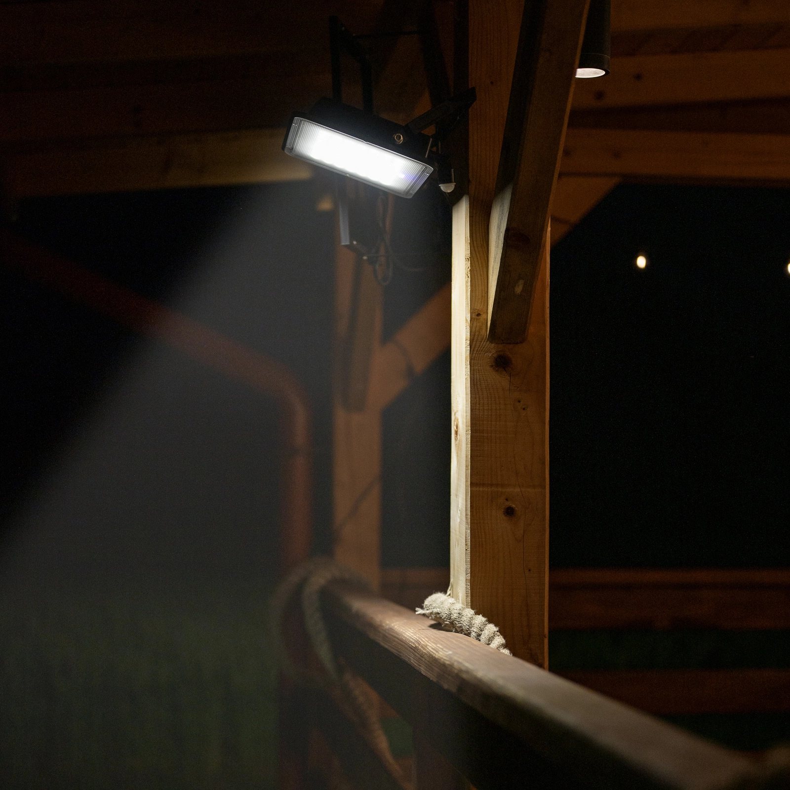 Svetlomet je vybavený snímačom pohybu a súmraku, ktorý sa postará o vaše pohodlie a bezpečnosť. Keď nastane tma, lampa sa automaticky spustí a svetlo sa zapne, keď zaznamená pohyb. Vďaka tomu nedochádza k plytvaniu energiou a priestor okolo vášho domu je vždy dobre osvetlený - presne vtedy, keď to potrebujete. Aby ste prevádzku lampy ešte viac prispôsobili, snímač pohybu môžete umiestniť v ľubovoľnom smere a dokonale tak nastaviť jeho dosah.