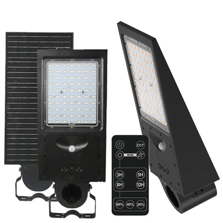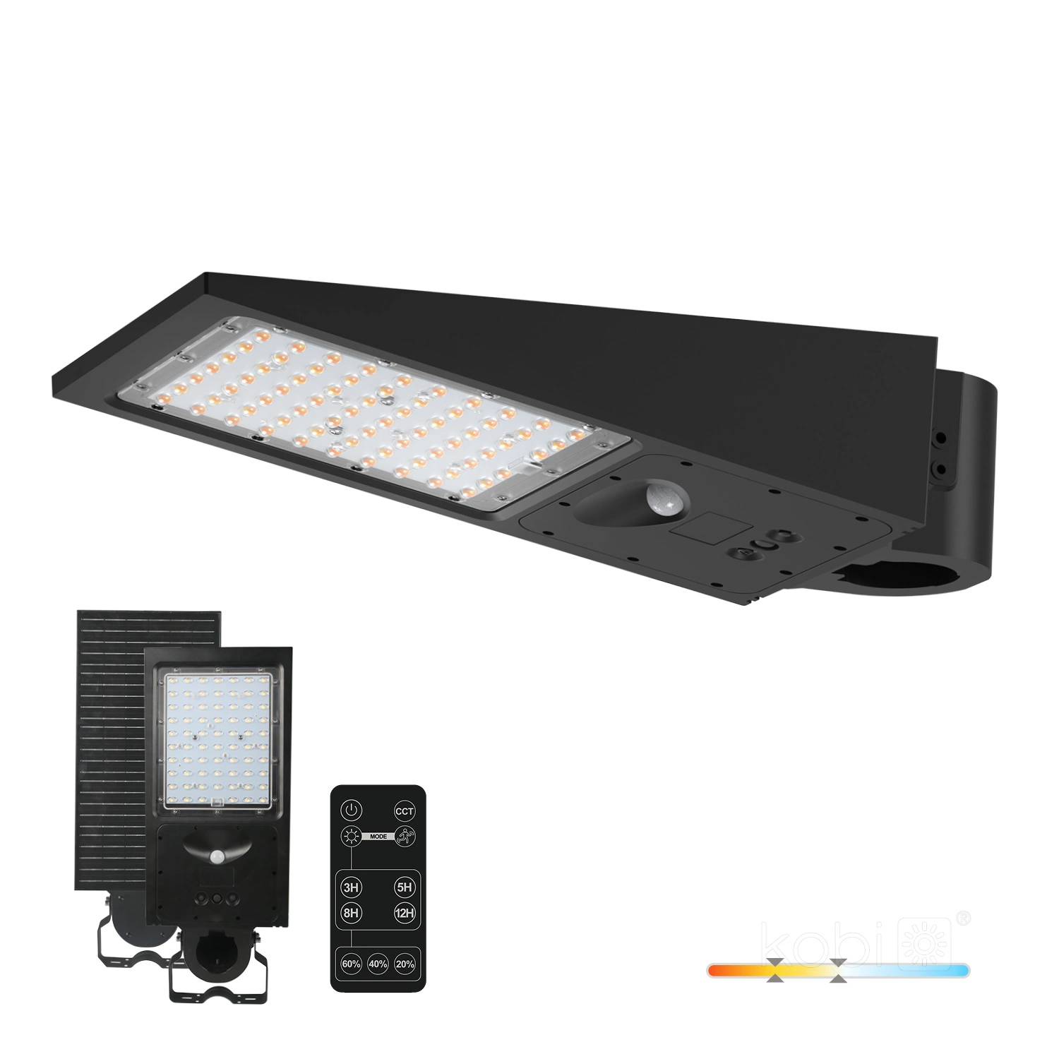 Solárne LED priemyselné pouličné osvetlenie 30W 4800lm CCT so senzorom pohybu a súmraku IP65 IK07 Black Street Kobi
