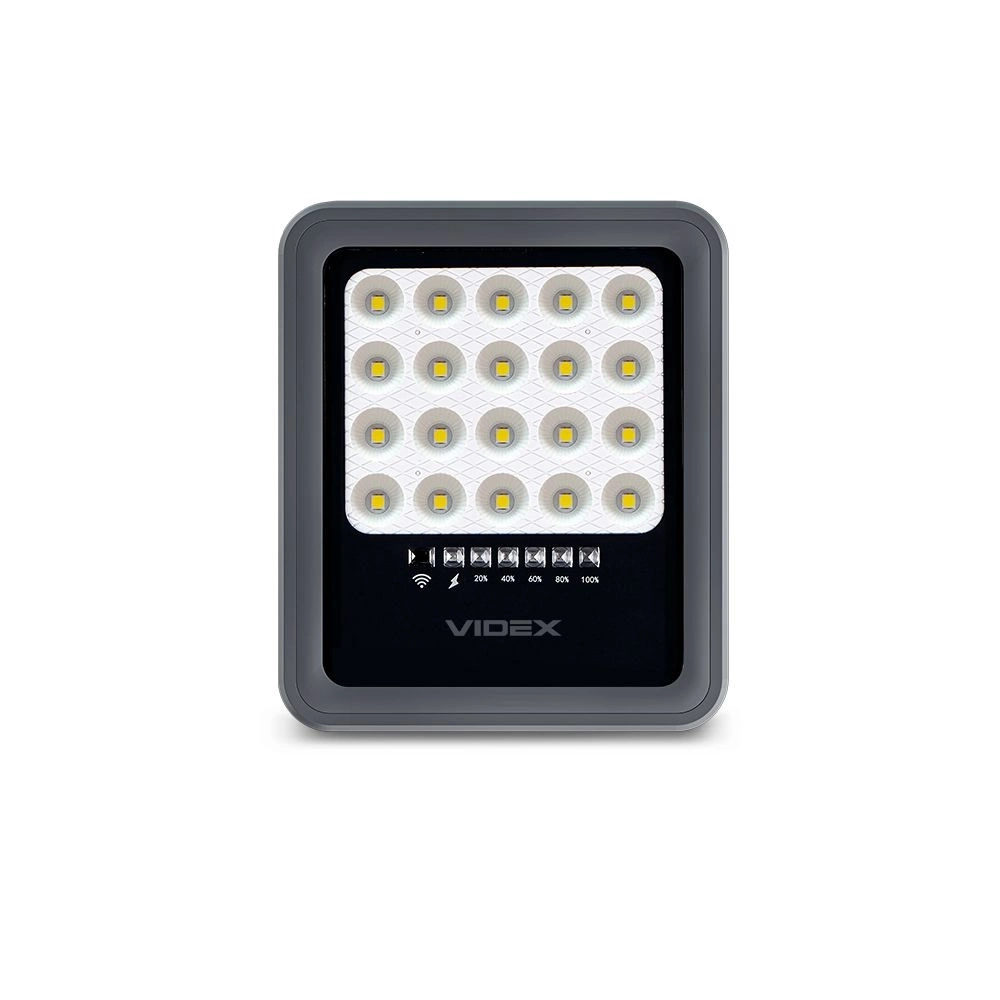 Reflektor VIDEX je vybavený monokryštalickým solárnym panelom a batériou s kapacitou 5000 mAh, ktorá poskytuje až 12 hodín efektívnej prevádzky po úplnom nabití len 8 hodín. Súčasťou balenia je praktický diaľkový ovládač na diaľkové ovládanie. Vďaka možnosti povrchovej montáže a sivej farbe svietidlo harmonicky zapadne do každého vonkajšieho prostredia. Ochrana LED a použitie integrovaného svetelného zdroja zaručujú životnosť 30000 hodín