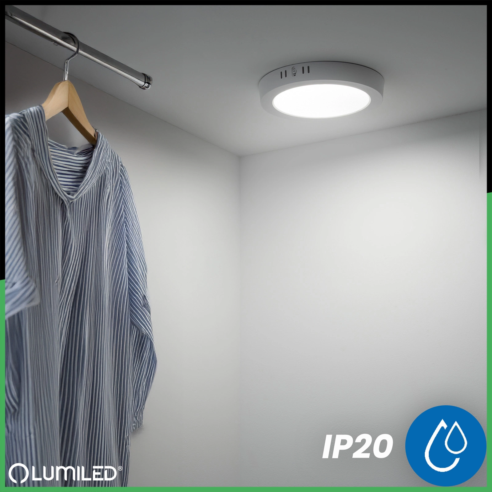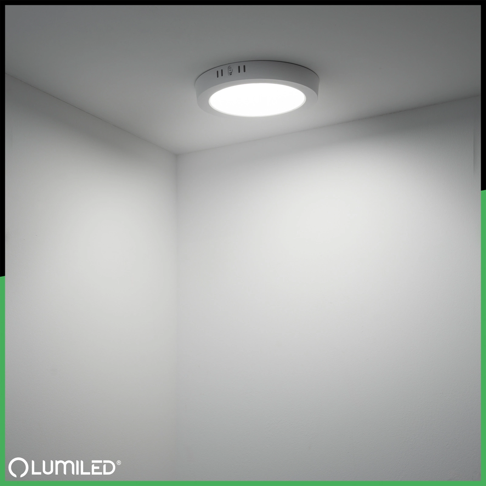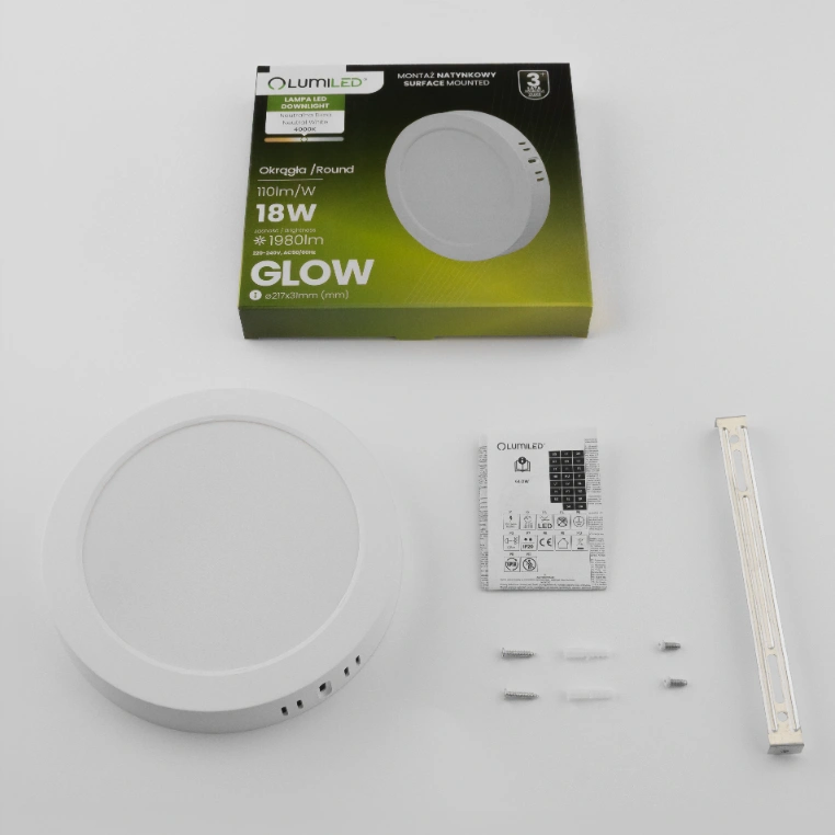 18W LED svietidlo na povrchovú montáž zo série GLOW od spoločnosti Lumiled je ideálnou kombináciou pohodlia, estetiky a úspornosti. Neutrálne 4000K svetlo poskytuje pohodlie pri práci a v každodennom živote a účinnosť 110 lm/W umožňuje jasné osvetlenie s nízkou spotrebou energie. Kompaktný tvar sa hodí do každého interiéru a jednoduchá povrchová montáž eliminuje potrebu úprav. Je to spoľahlivé riešenie, ktoré vydrží roky - bez údržby.