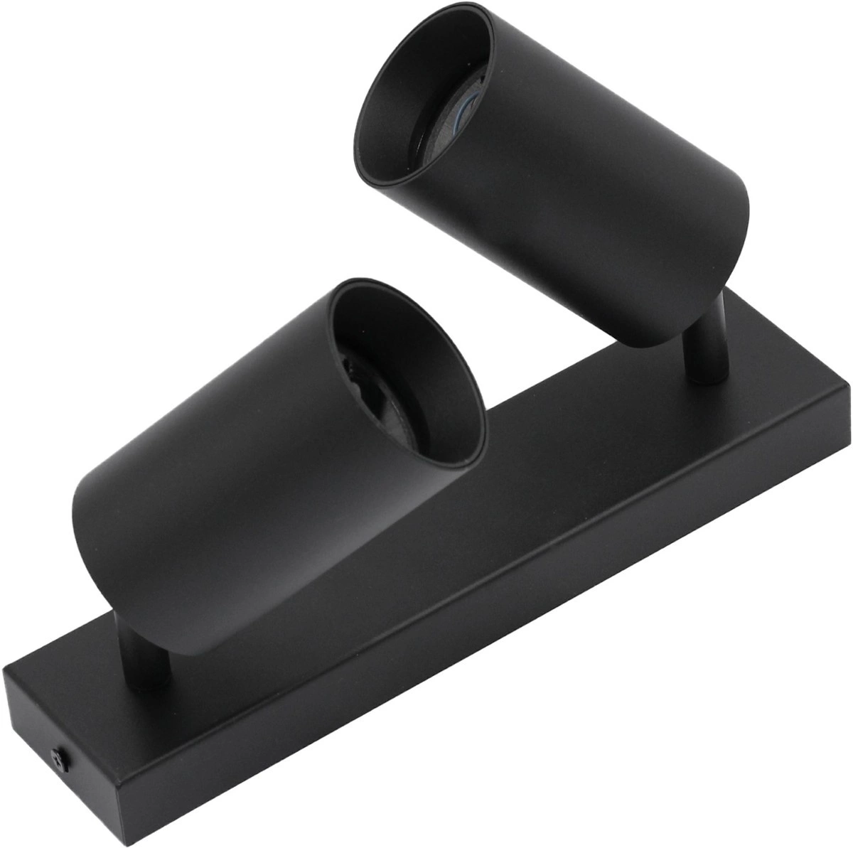 Lampa sufitowa, Kinkiet serii QUALIS z dwoma punktami świetlnymi, w kolorze czarnym matowym, wykonany z wysokiej jakości aluminium. Kinkiet przystosowany został do żarówek o maksymalnej mocy 50W i trzonku GU10. Reflektory sufitowe swoje zastosowanie znajduje jako oświetlenie dekoracyjne pomieszczeń, dzięki możliwości regulacji reflektora możemy skierować światło w odpowiednie dla nas miejsce. Reflektor został wyposażony w trzonek — gwint GU10. Zaletą lampy z wymiennym źródłem światła jest możliwość wybrania Żarówki o odpowiedniej do naszych potrzeb barwie światła (maksymalna moc żarówki nie może przekraczać 50W).