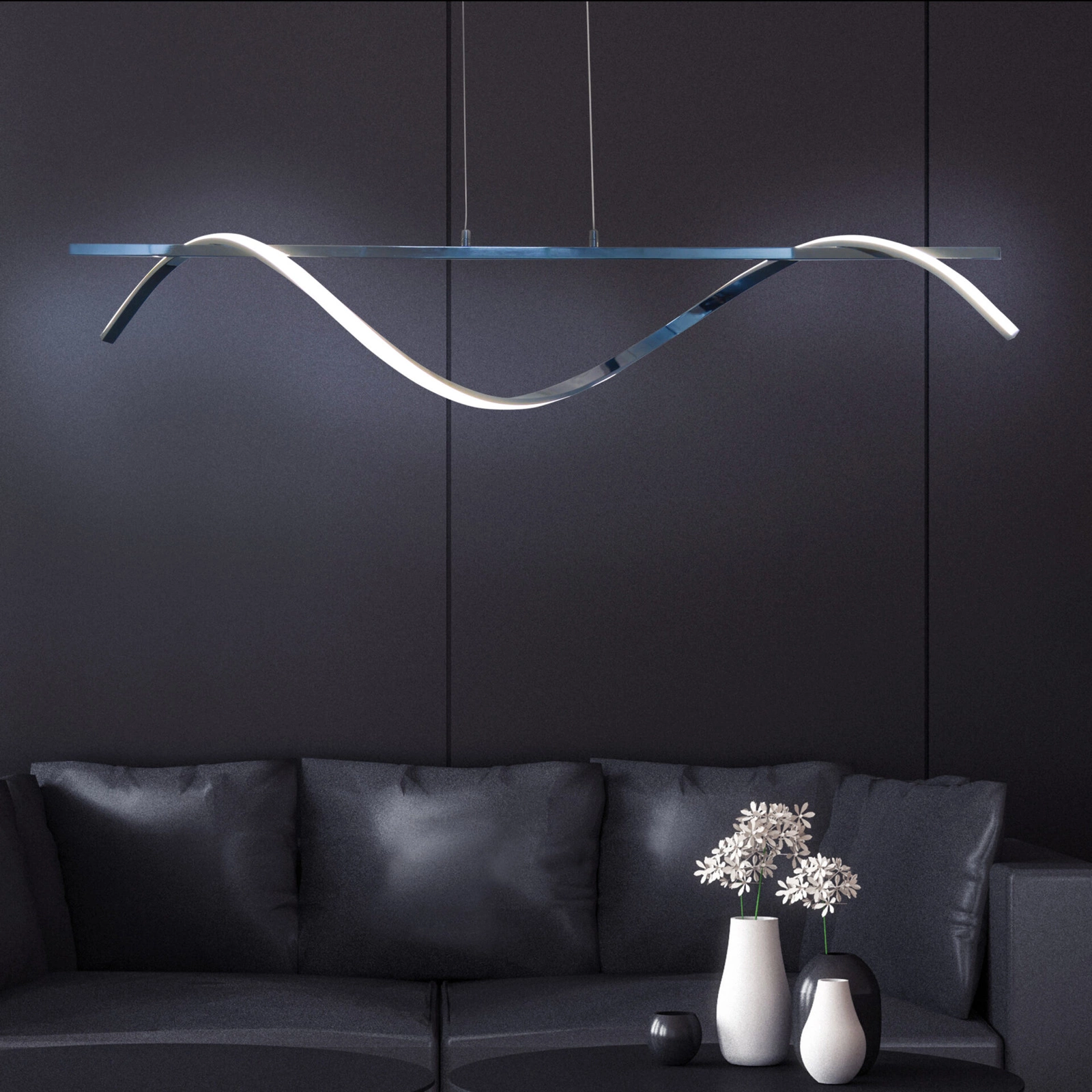 - Moderný dizajn: Elegantná forma tvaru tildy (~) a chrómová povrchová úprava dodávajú lampe moderný nádych, čím zvýrazňujú štýl interiéru.