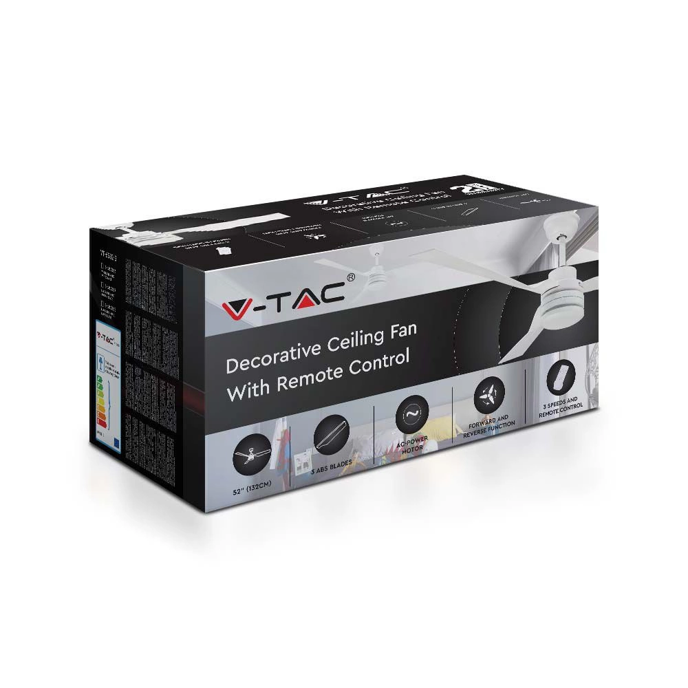 Wentylator sufitowy 65W Z pilotem RF 3 ramiona Biały 130 cm VT-6552-3 V-TAC