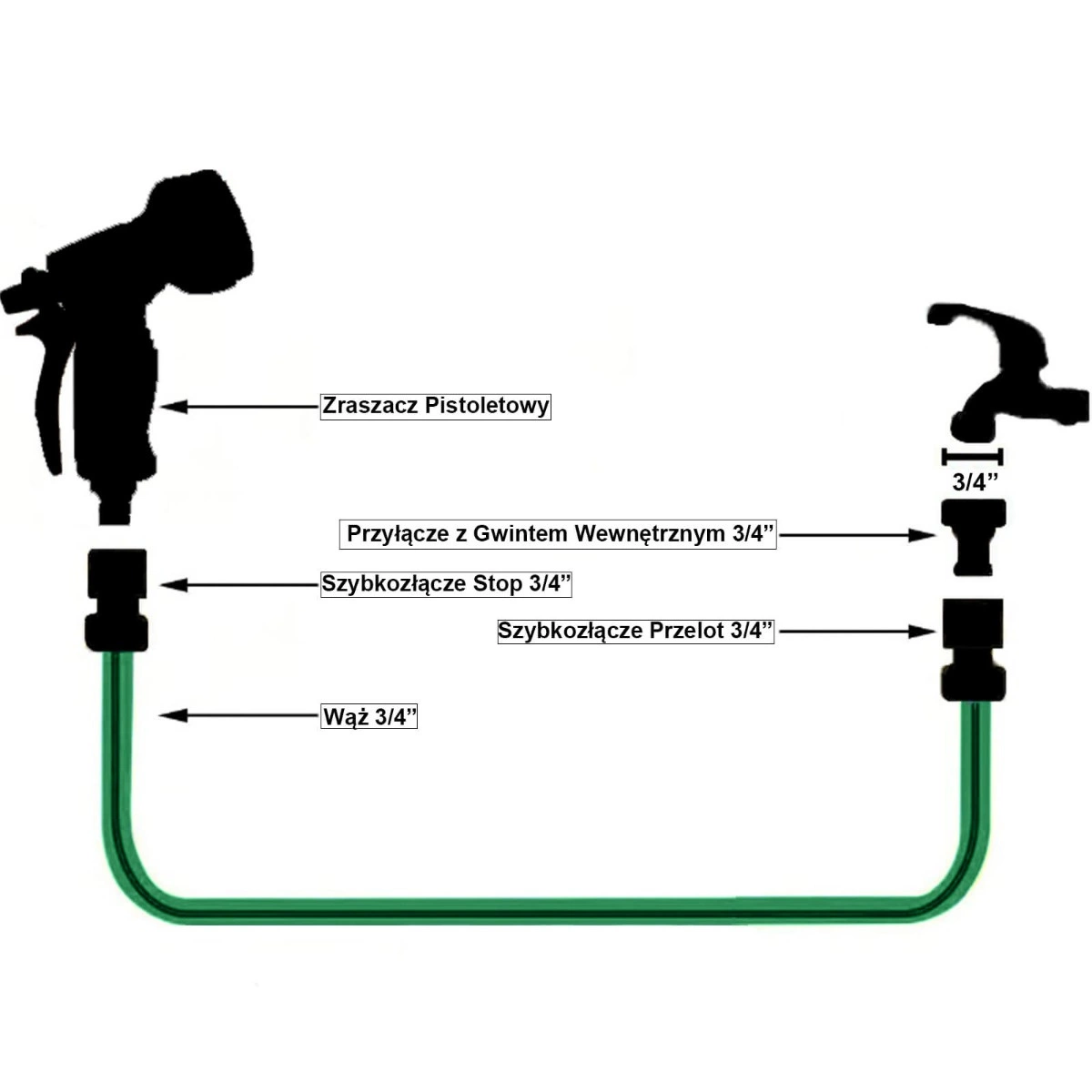 Zestaw Wąż Ogrodowy do Wody 3/4" 50m, Zraszacz Pistoletowy, Przyłącze z Gwintem, Szybkozłącze Stop, Szybkozłącze Przelot 3/4" CELLFAST
