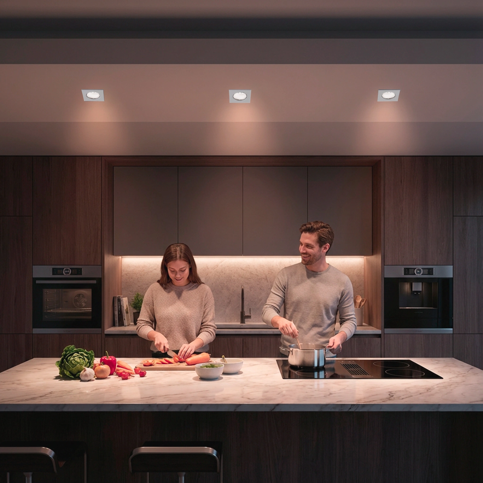 Kwadratowa Oprawa Halogenowa stała w kolorze Białym marki Lumiled, została wykonana z wysokiej jakości stali. Oprawa została przystosowana do montażu podtynkowego, w połączeniu z dobrą Żarówką LED może służyć do podświetlenia dekoracyjnego, jak i do oświetlenia ogólnego w większych otwartych pomieszczeniach, gdzie zastosowanie pojedynczego źródła światła okazuje się niewystarczające, a dzięki swojemu nowoczesnemu wyglądowi swoje zastosowanie znajdzie w każdych nowocześnie urządzonych mieszkaniach, domach czy też eleganckich biurach.