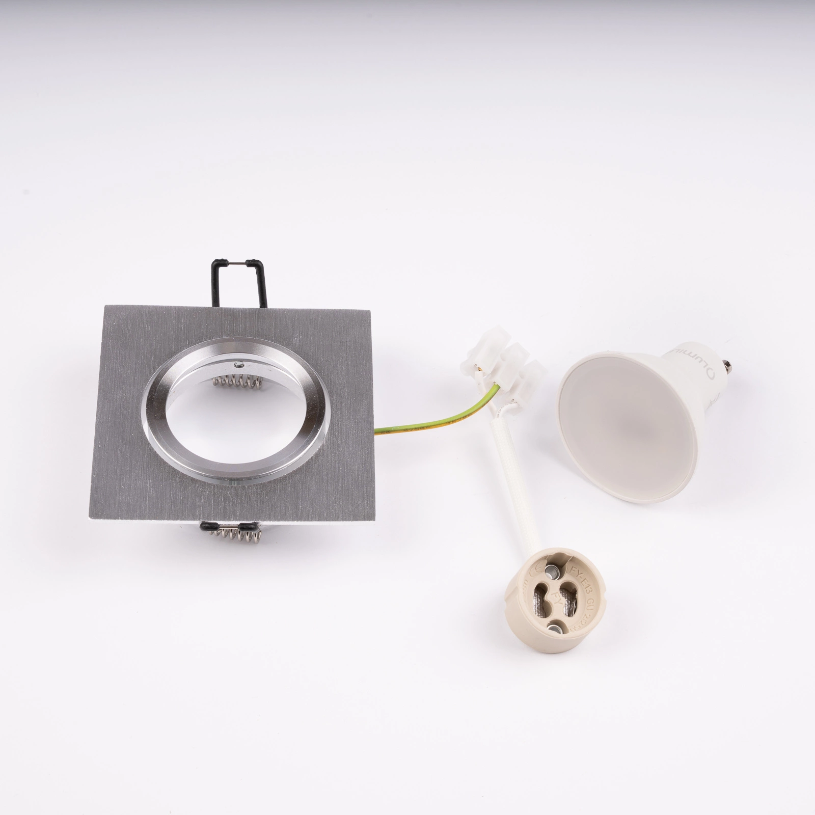 Štvorcové stropné svietidlo Lumiled TRIX v brúsenej striebornej farbe je kompletné riešenie 3 v 1 - súprava obsahuje zapustenú montáž, 6W LED žiarovku GU10 a montážny blok. Vďaka tomu je výrobok okamžite pripravený na inštaláciu a nevyžaduje si žiadne ďalšie nákupy. Teplá farba svetla 3000 K vytvára príjemnú atmosféru podporujúcu relaxáciu a nastaviteľný držiak umožňuje nasmerovať svetlo na požadované miesta. Ide o všestranné osvetlenie, ktoré spája funkčnosť a estetiku v jednom výrobku.